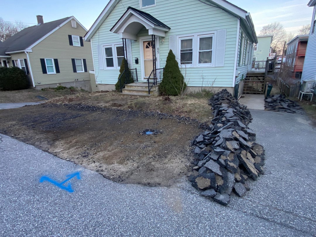 Ich kaufte ein Haus und riss den Asphalt auf, den der Vorbesitzer über den Rasen vor dem Haus gegossen hatte. Wie kann man von hier aus am besten mit der Restaurierung in einen Garten/Staudengarten fortfahren?