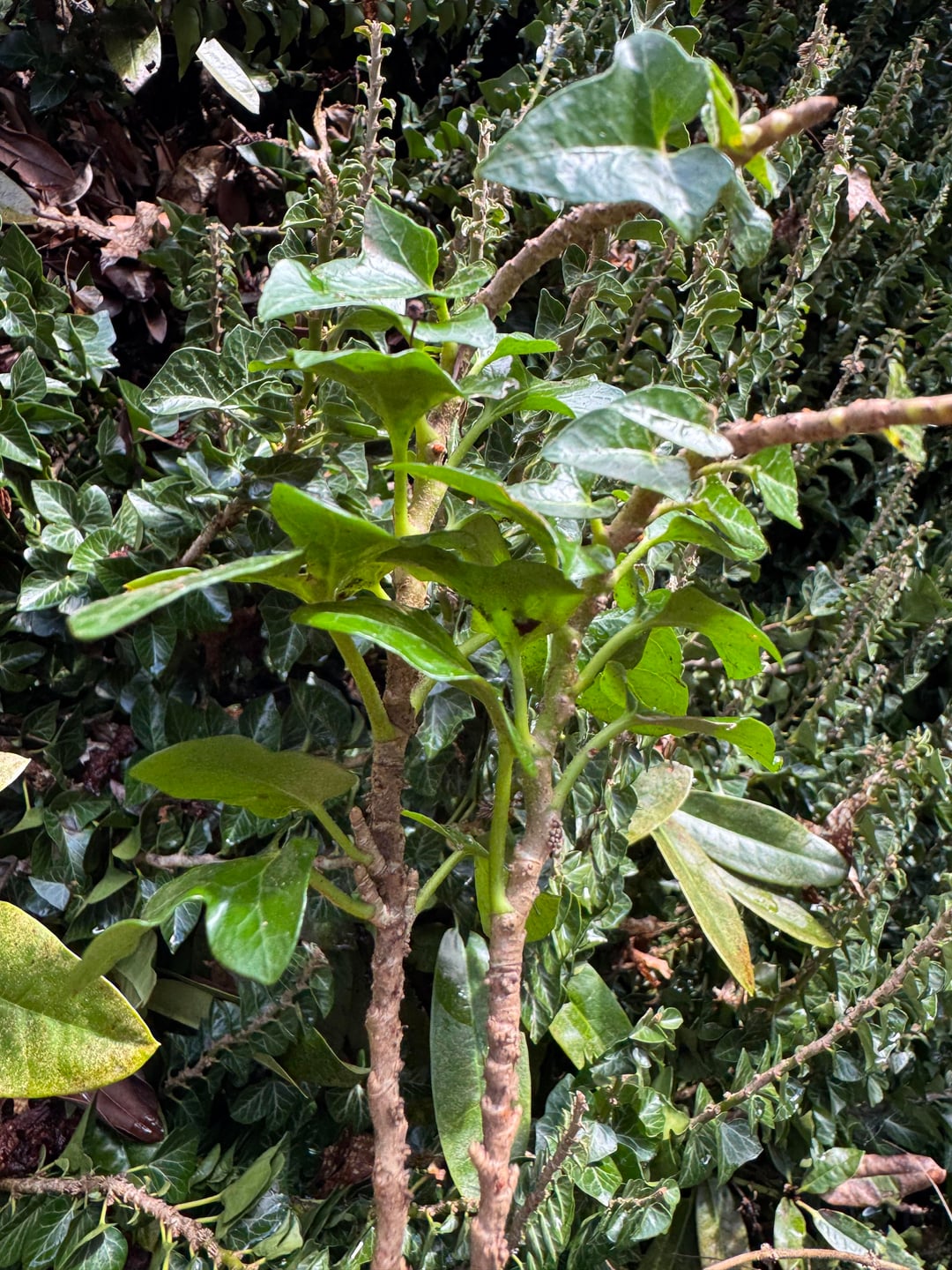 Ich habe ein paar Arten von Strauch-Efeu nachgeschlagen, aber diese hat nicht die Eigenschaften einer von ihnen. Die größten Blätter sind kaum so lang wie mein Daumen. Unterschiedliche Blattform. Keine Abwechslung.
