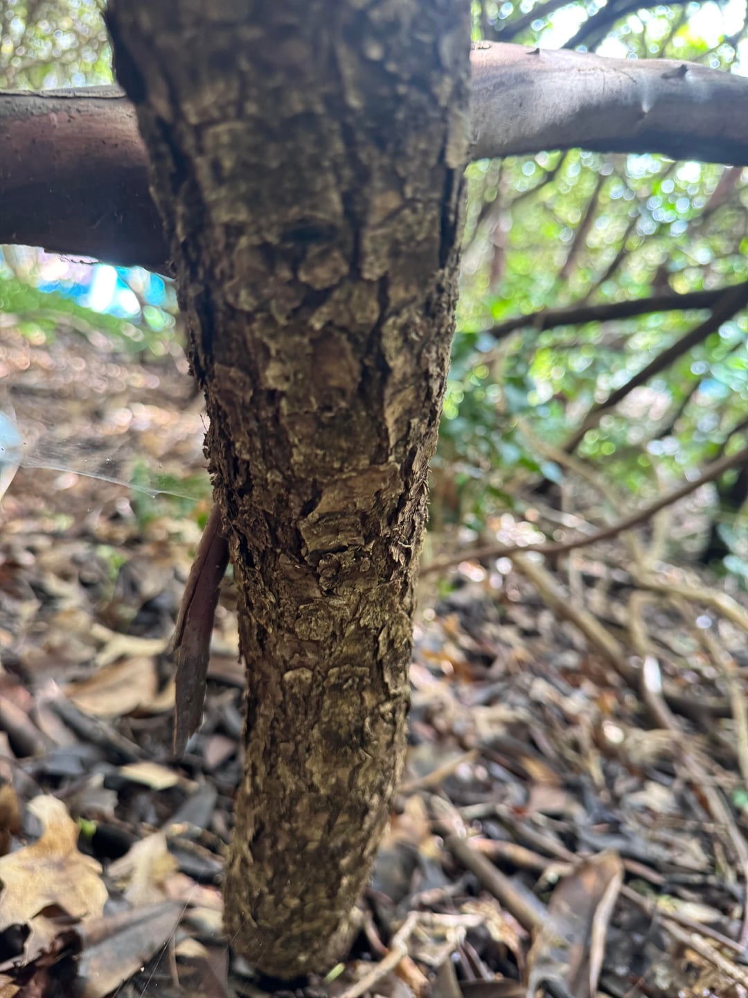 Die kleinen Fasern, die aus den Knoten wachsen, sehen aus, als würden sie Wurzeln schlagen, aber ich habe sie nicht dazu gebracht, das zu tun. Wenn ich es abstütze, muss ich es genauso machen, wie ich es mit anderen holzigen Dingen wie Lavendel oder Rosmarin tun würde.