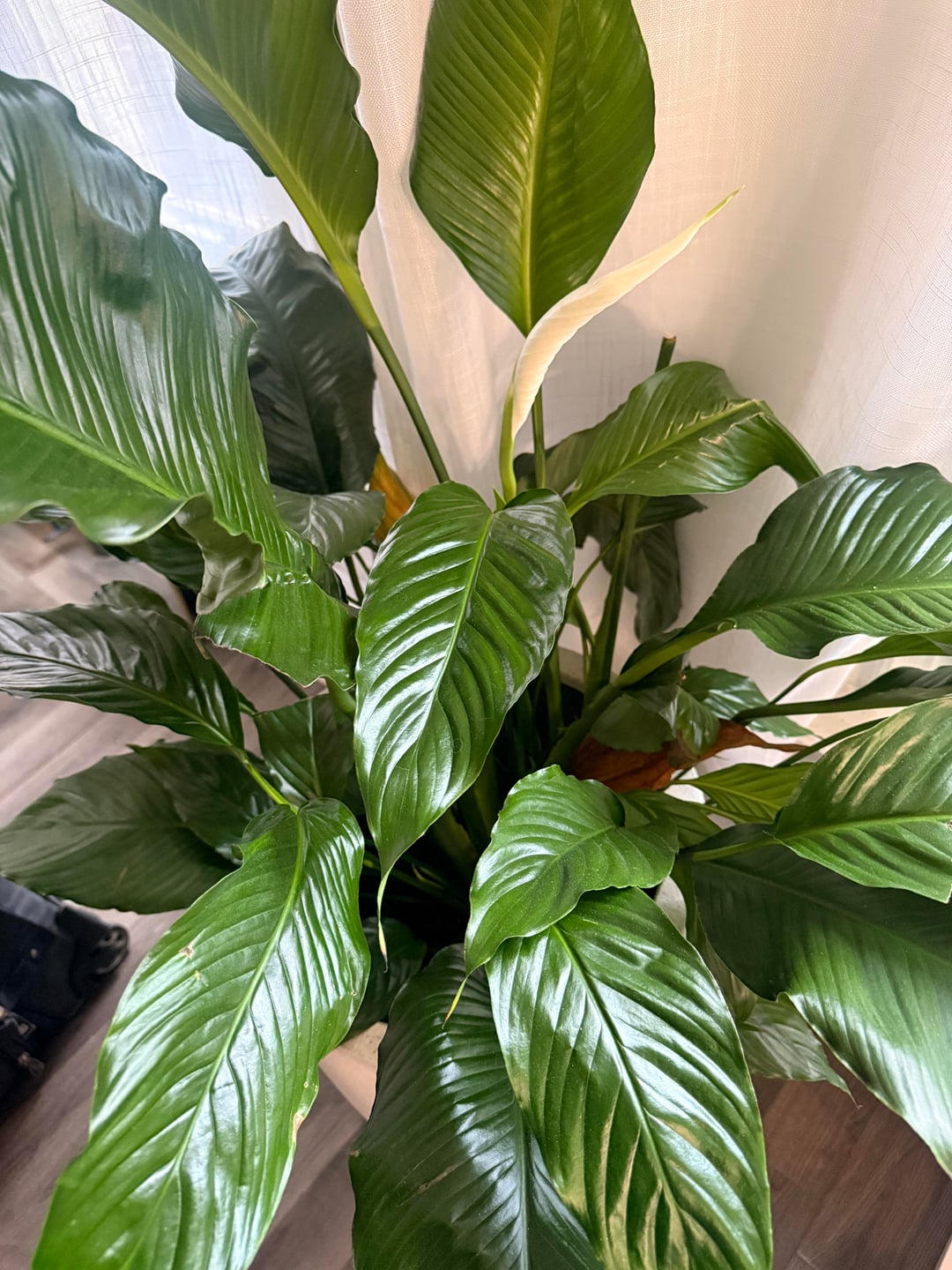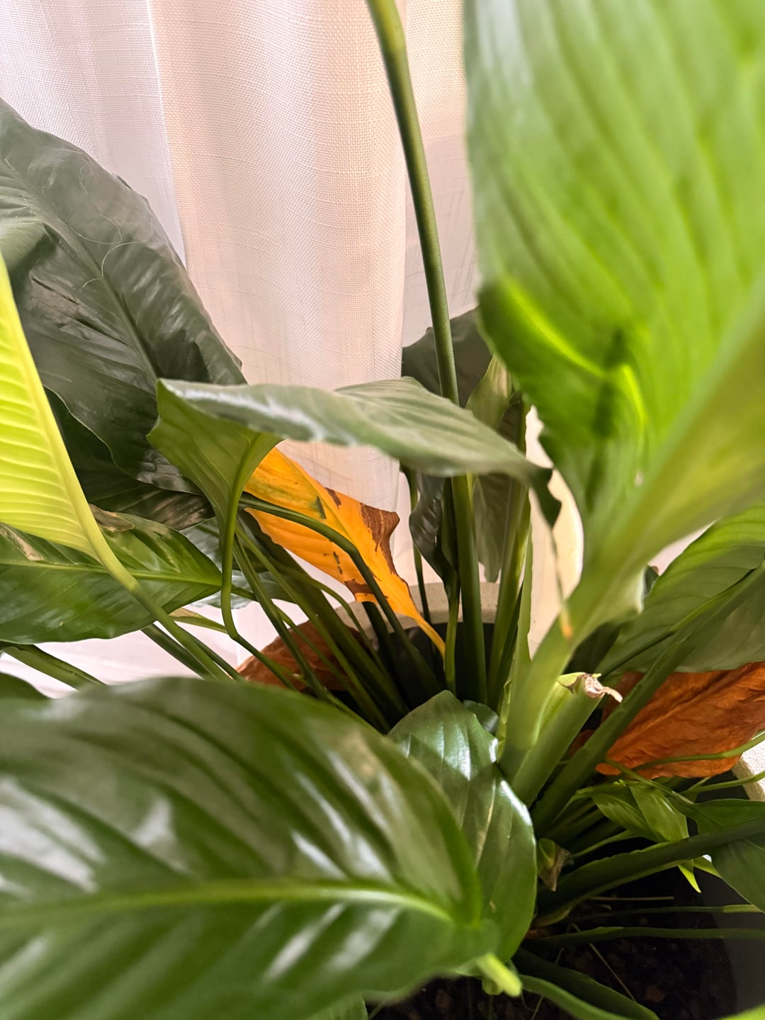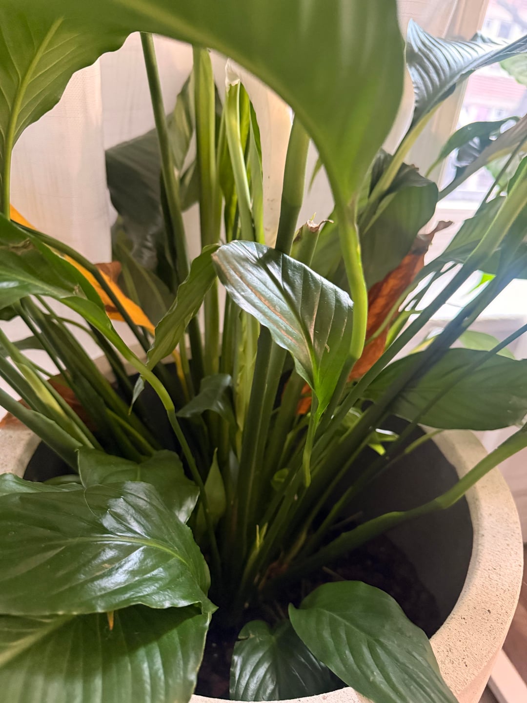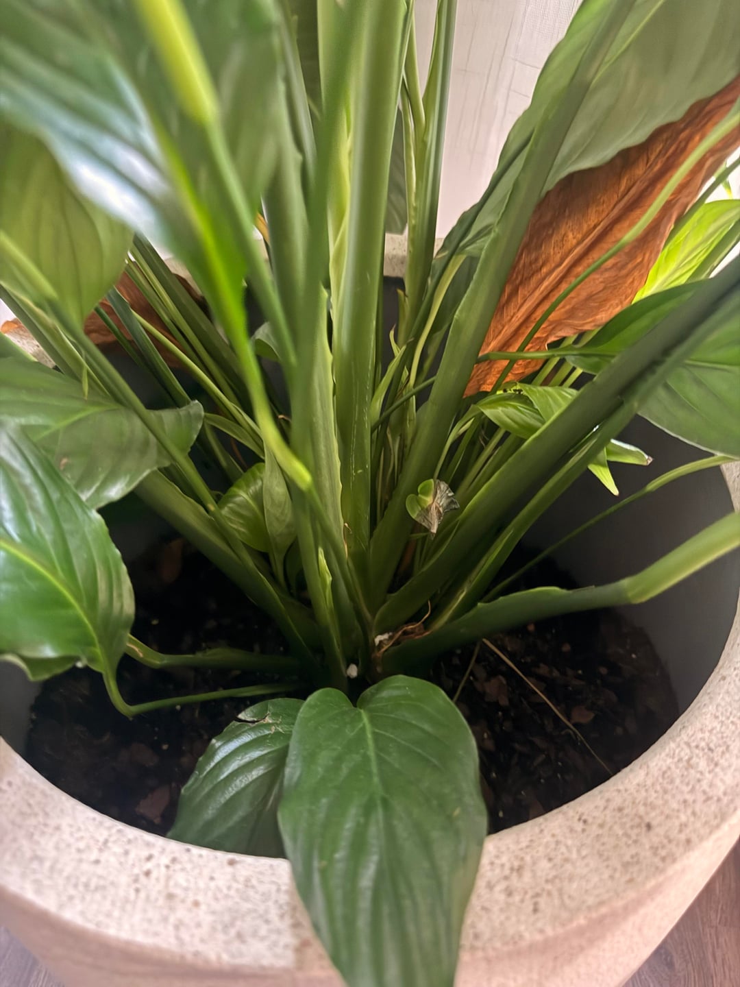 Ich finde, die Friedenslilie sieht im Moment großartig aus und blüht! Auch unten gibt es neues Wachstum. Aber ich weiß nichts über Pflanzen und scheine widersprüchliche Informationen zu erhalten, wenn ich nach Rat suche.