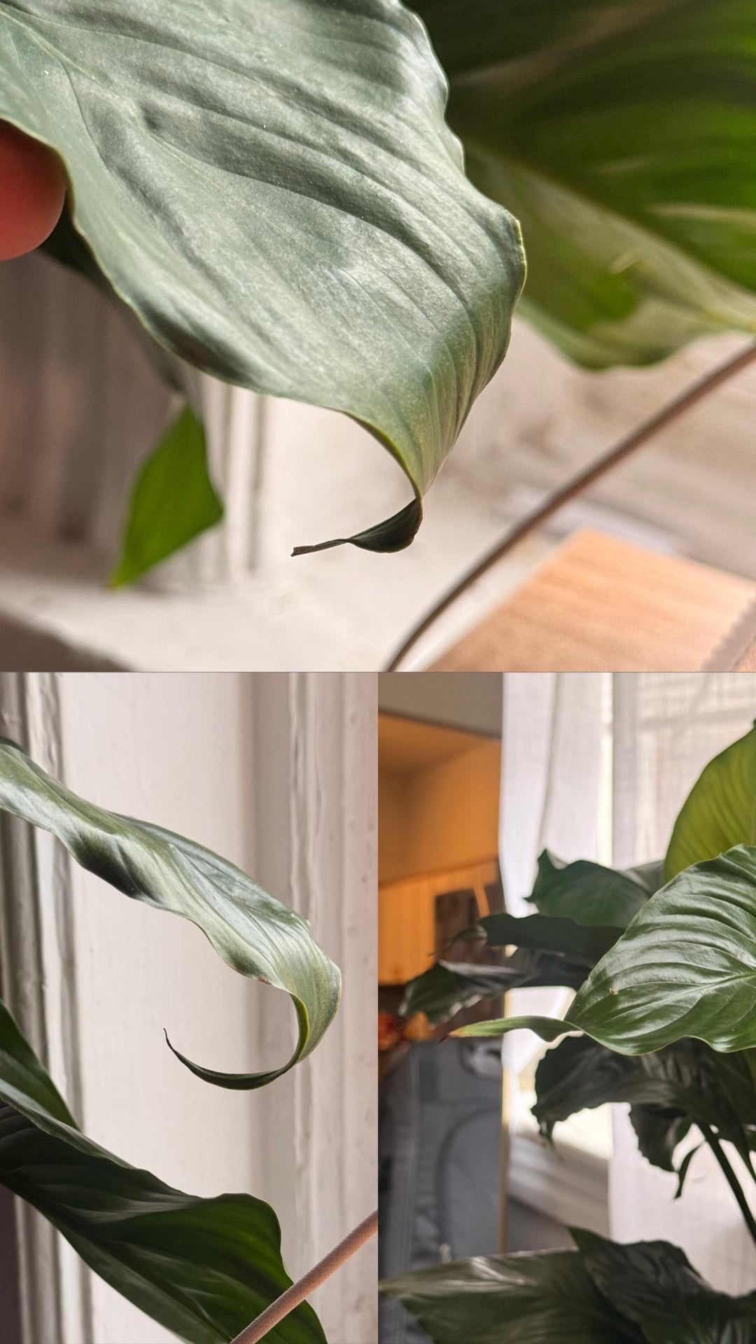 Die Enden einiger Blätter haben in den letzten Wochen begonnen, sich zu kräuseln. Was verursacht das und kann es rückgängig gemacht werden? Könnte es sein, dass es vor dem Fenster zu viel Licht gibt?