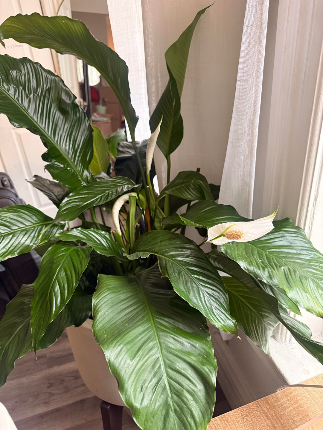 Meine Mutter starb Ende Januar und jemand schickte zu ihrer Beerdigung eine Friedenslilie, die ich mit nach Hause nehmen konnte. Ich hatte im Laufe der Jahre ein paar Zimmerpflanzen, nur von Trader Joe’s oder so, und war nie engagiert genug, um zu lernen, wie man sie pflegt, und sie hielten nicht lange. Ich möchte sicherstellen, dass dies der Fall ist!