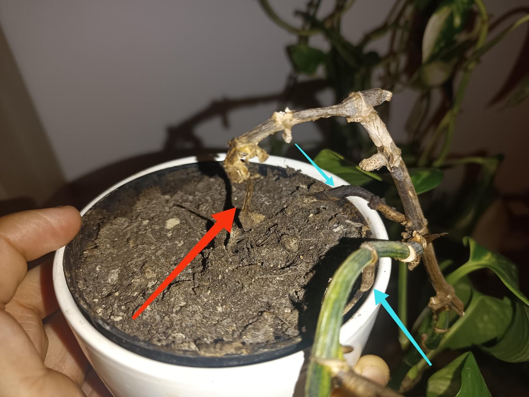 Hab heute beim Gießen gesehen das bei einer meiner Pflanzen der "Hauptstrang" welcher in die Erde geht sehr dünn geworden ist. Sonst sieht sie aber fit aus von Blättern etc. her.