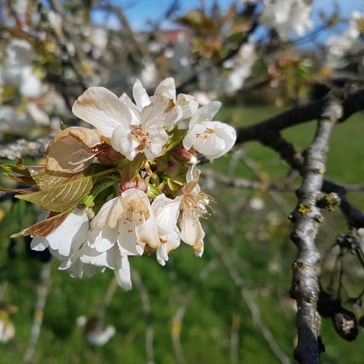 Guten Morgen. Ich bin in der Region Rhone-Alpes, im Tal. Im Herbst zog ich in ein Haus, in dem es bereits einen Obstgarten mit einem Dutzend Apfel- und Kirschbäumen gab, von denen einige klein und andere sehr imposant waren. Die Vorbesitzer hatten es nur sehr wenig gepflegt und dies ist das erste Frühjahr, in dem ich es beobachten konnte.