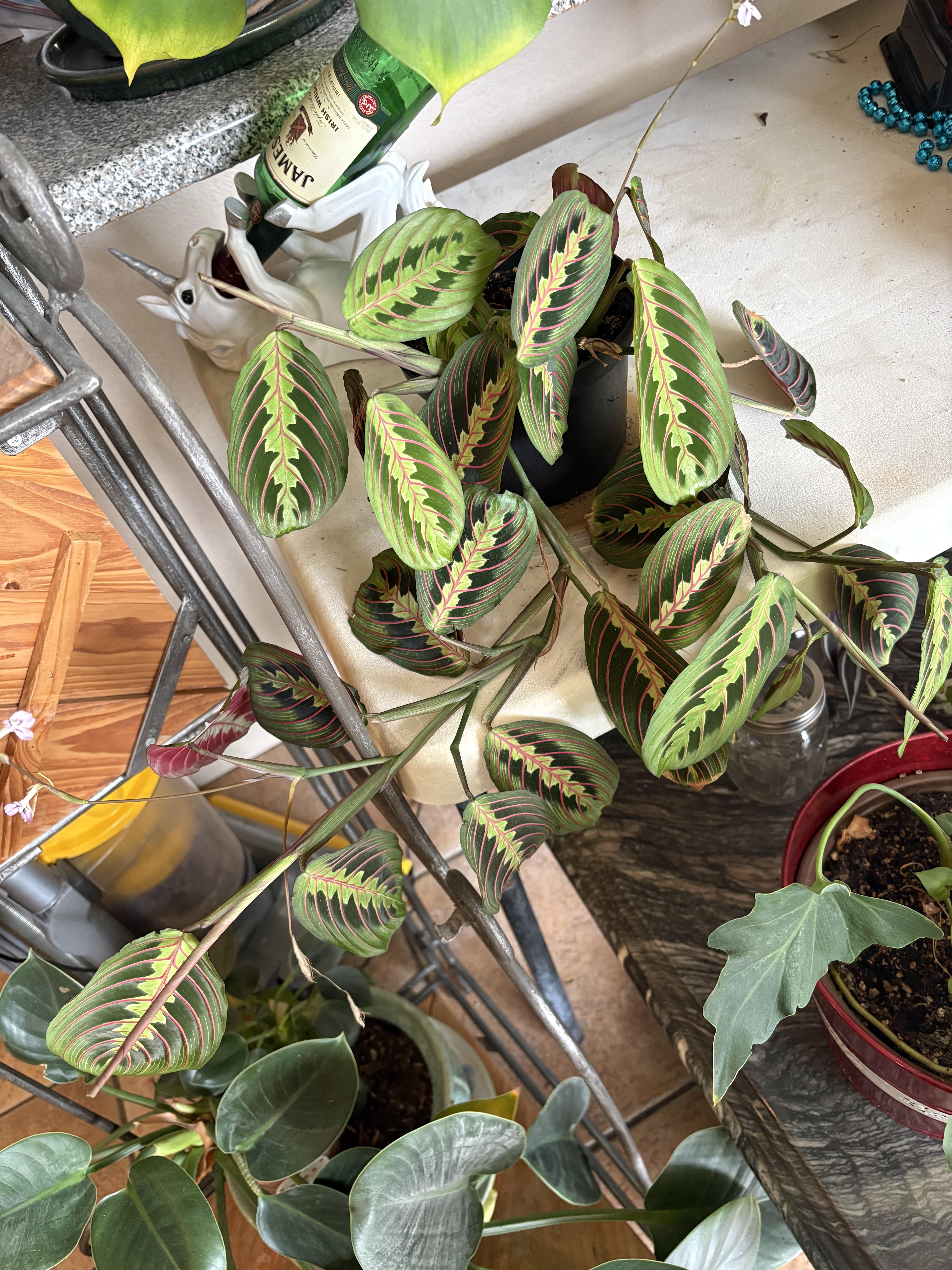 Als ich über diese Pflanze sehr frustriert war, habe ich im wahrsten Sinne des Wortes ein Bild gepostet, auf dem sie in meiner Mülltonne steht und sagt, dass ich sie los werde. Ihr netten Leute habt mich überzeugt, es noch einmal zu versuchen, und wie ihr sehen könnt, bin ich sehr glücklich. Da ich mich an einem *sehr* trockenen Ort (Las Vegas) befinde, haben Sie alle mir geholfen zu lernen, dass ich größere Anstrengungen unternehmen muss, um ihn die ganze Zeit ziemlich feucht zu halten, und das Beschlagen der Blätter war etwas, was ich noch nie gemacht hatte.
