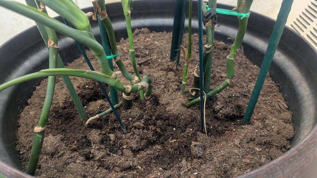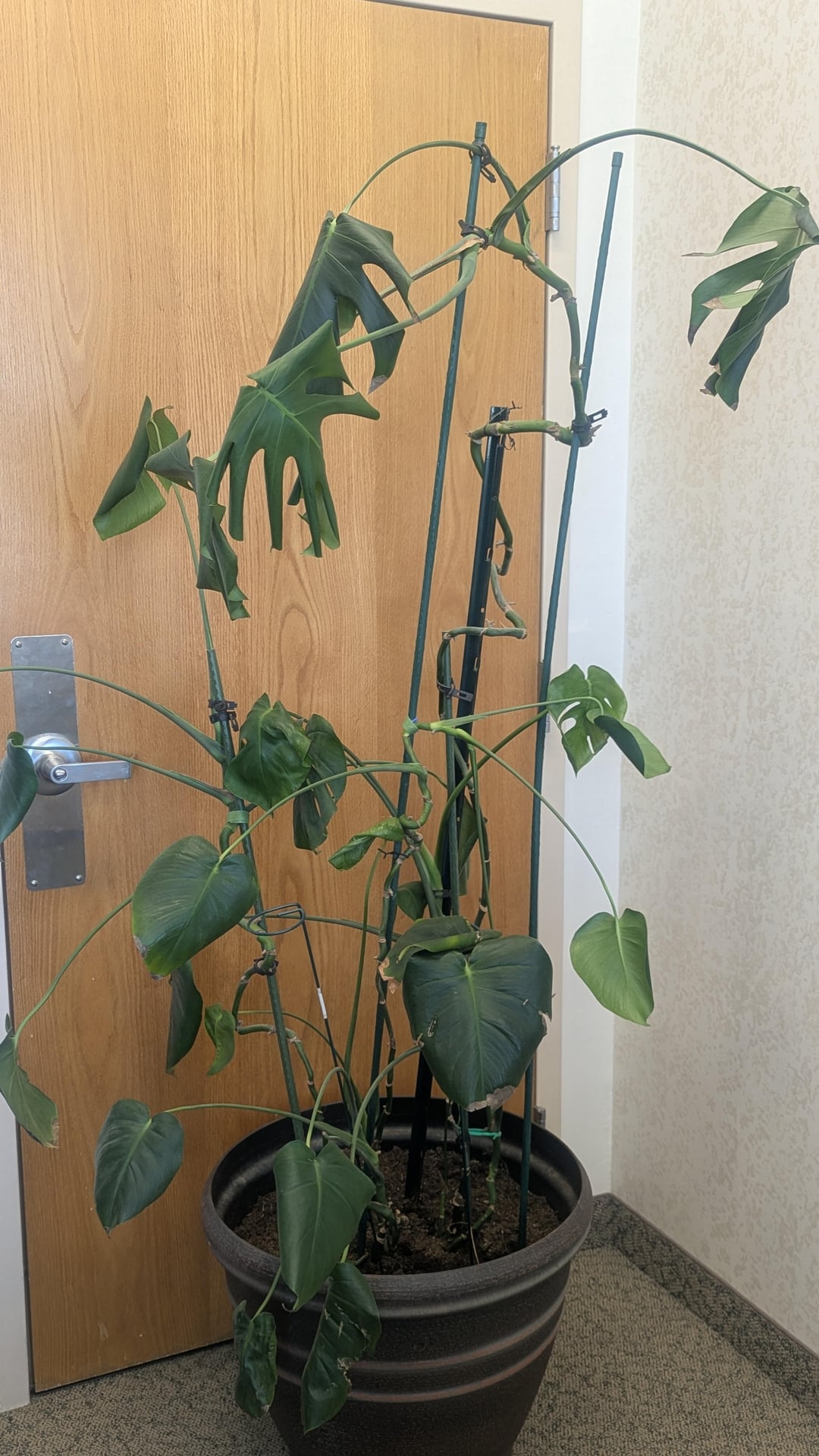 Ich habe diese Pflanze seit 2012. Wie Sie sehen können, ist sie etwas wild. Ich suche Hilfe, damit es gedeiht. Ich habe es vor etwa drei Wochen an einen neuen Ort mit viel besserem Licht verlegt. Während des Transports ist der höchste Ast abgebrochen, so dass die oben zusammengerollten Blätter meiner Meinung nach bald verschwinden werden. Soll ich die Pflanze so lassen, wie sie ist, sie teilen und umtopfen oder etwas anderes? Für jeden Rat oder jede Anregung sind wir sehr dankbar!