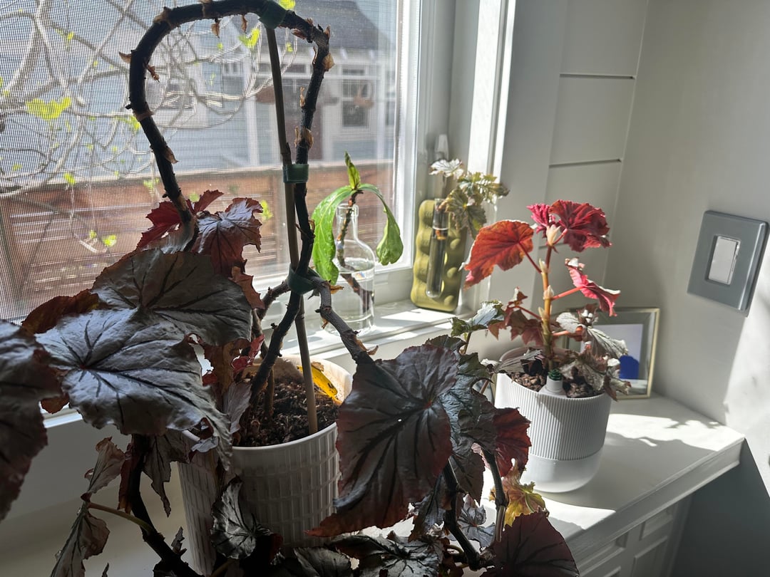 Ich habe eine sehr langbeinige Begonie (der längste Stiel ist fast 3 Fuß lang und die unteren 18 Zoll sind kahl). Ich habe eine weitere junge Pflanze, die aus einem Steckling gezogen wurde, und eine weitere, die sich vermehrt. Soll ich einfach die Hauptpflanze zurückschneiden und alle Stecklinge wieder in den Topf geben? Wie weit sollte ich zurückschneiden? Brauche ich einen größeren Topf? Mein Daumen neigt sich etwas braun, also brauche ich Rat, bevor ich das vermassele 😅