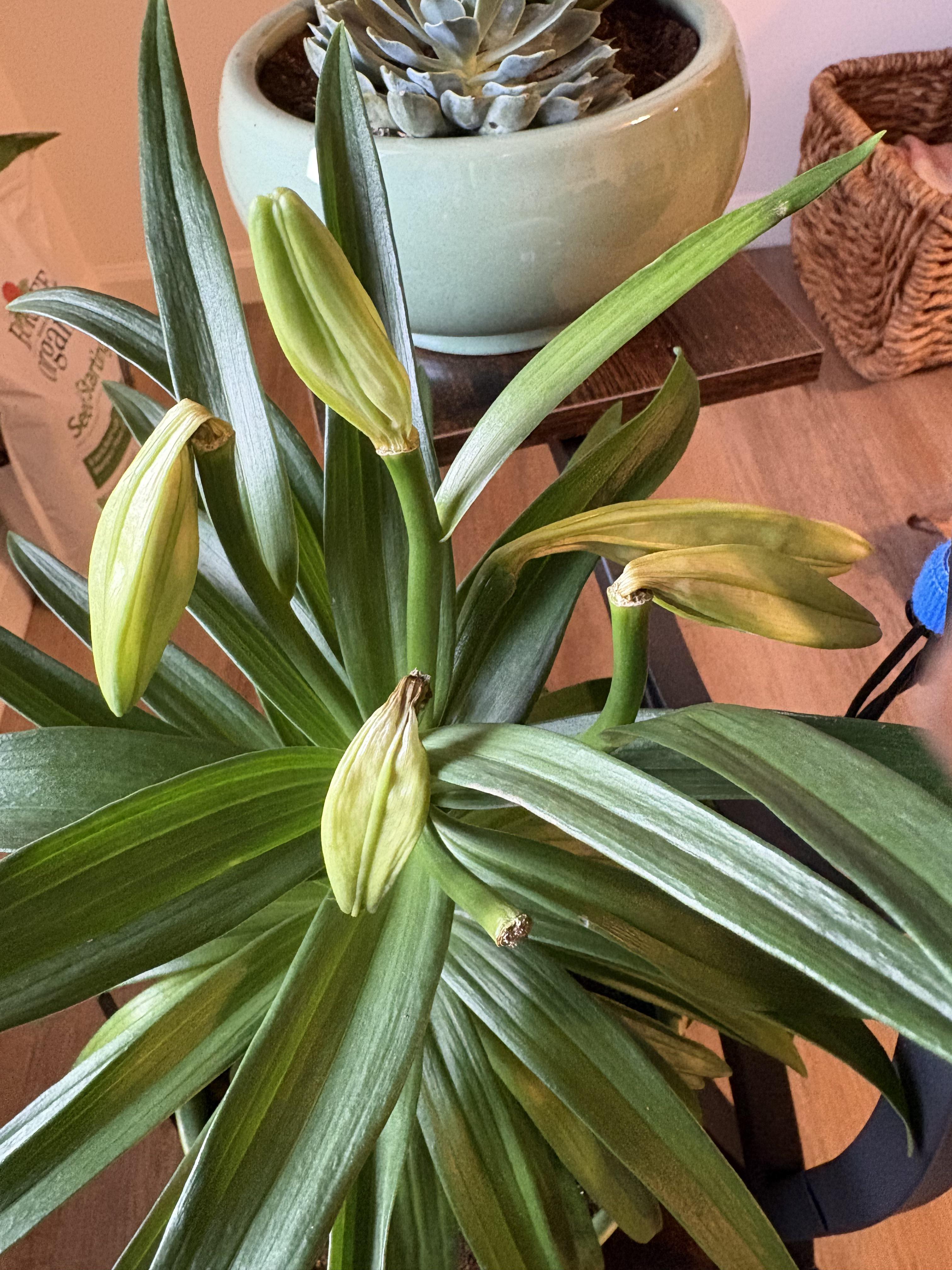 Als ich die Pflanze bekam, hatten sich die Blüten noch nicht geöffnet. Ich habe es in einen Topf mit neuer Erde gegeben und unter die Wachstumslampen gestellt, die ich gerade bekommen habe. Die Blumen sterben jetzt und haben sich nie geöffnet. Ich bin ein Pflanzenneuling und habe in den letzten zwei Wochen nur zweimal gegossen. Was mache ich falsch?