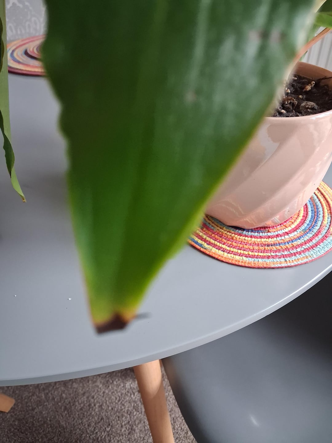 Also brachte ich diesen Kerl letztes Wochenende nach Hause, meldete ihn mit grober Erde zum Lüften (und ich traue Gartencenter-Erde nicht), gab ihm Pflanzennahrung, säuberte ihn und stellte ihn an einen Ort mit gutem Licht. Ein paar seiner Spitzen wurden schwarz, also dachte ich, es wäre ein Sonnenbrand und entfernte ihn weiter vom Fenster, aber er bekommt immer noch dunkle Spitzen und jetzt einen großen Brauenfleck! was mache ich falsch 🙁
