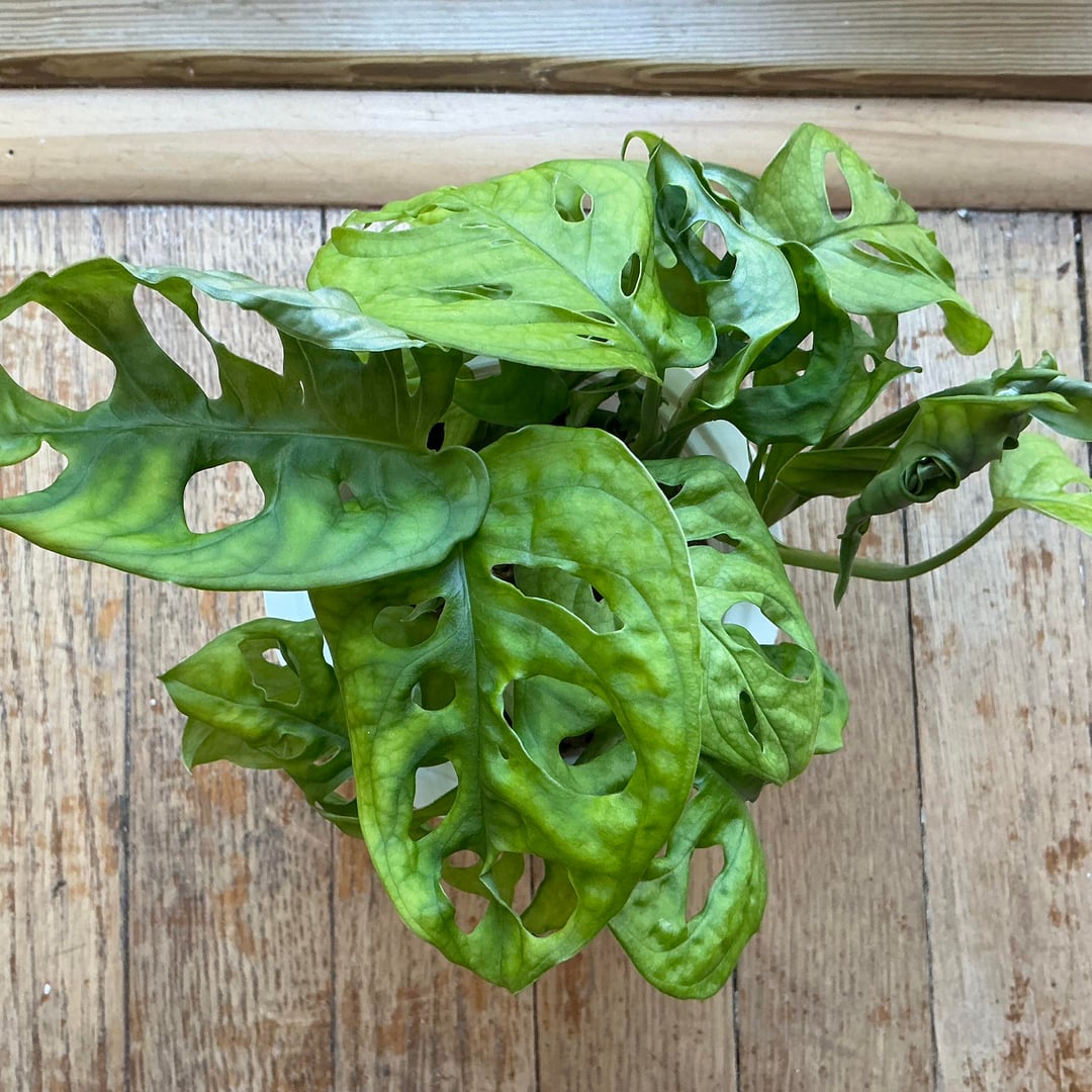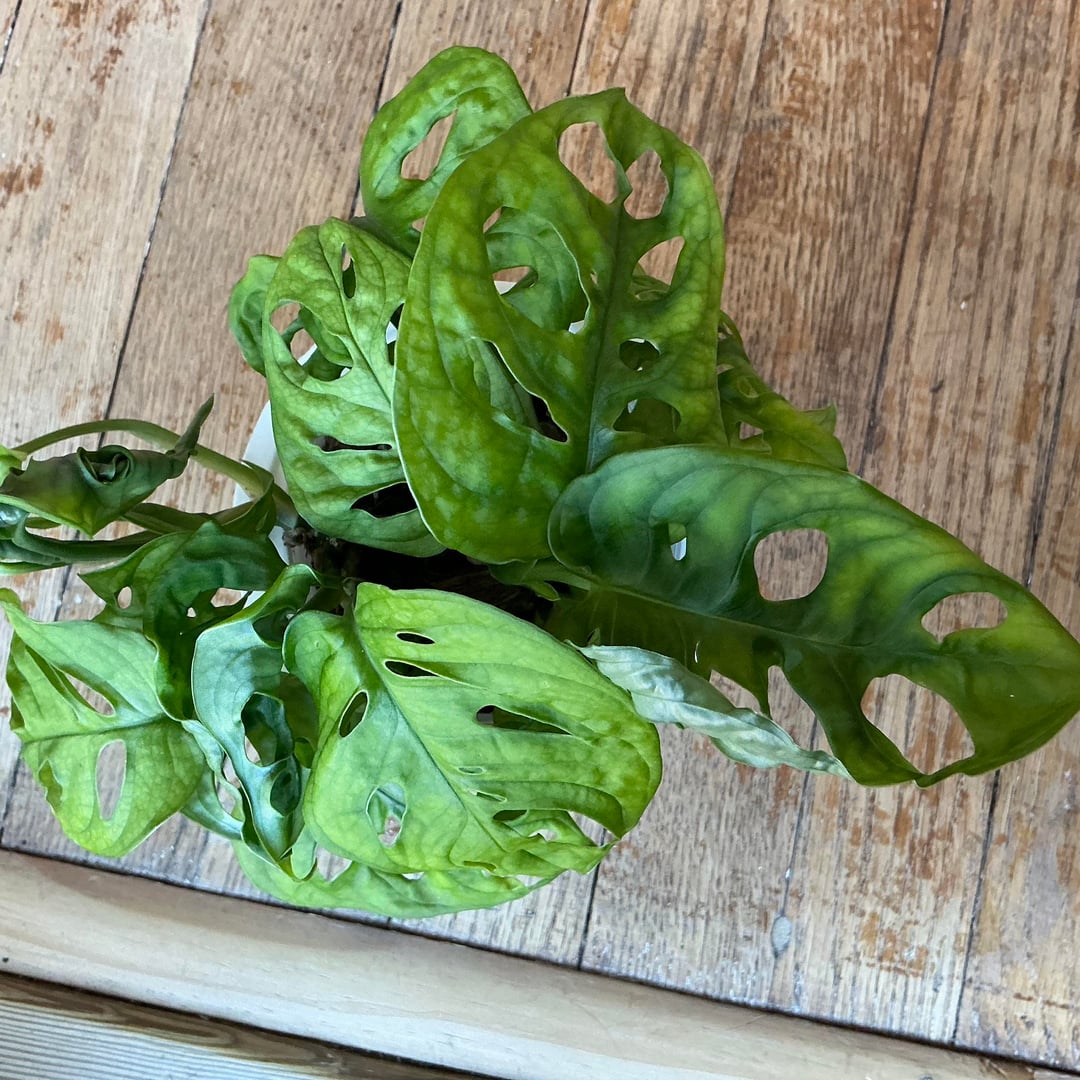 Mein Monstera hat gerade angefangen, wie verrückt zu wachsen. Vom ersten Tag an waren die Blätter stets faltig, geädert und sowohl hell- als auch dunkelgrün. Die Blätter sind fest und wachsen schnell. Ich habe es bei jedem Gießen leicht gedüngt und es befindet sich in einem feuchtigkeitsableitenden Topf mit Kies, Perlit, Rinde, Schale und etwas Kokostorf. Ich hatte damit Probleme, wenn ich nur Erde anbaute, also bin ich auf einen selbstbewässernden Topf umgestiegen, der definitiv gut funktioniert hat. Aber ich dachte, diese Pflanze sollte dunkelgrüne und glattere Blätter haben?
