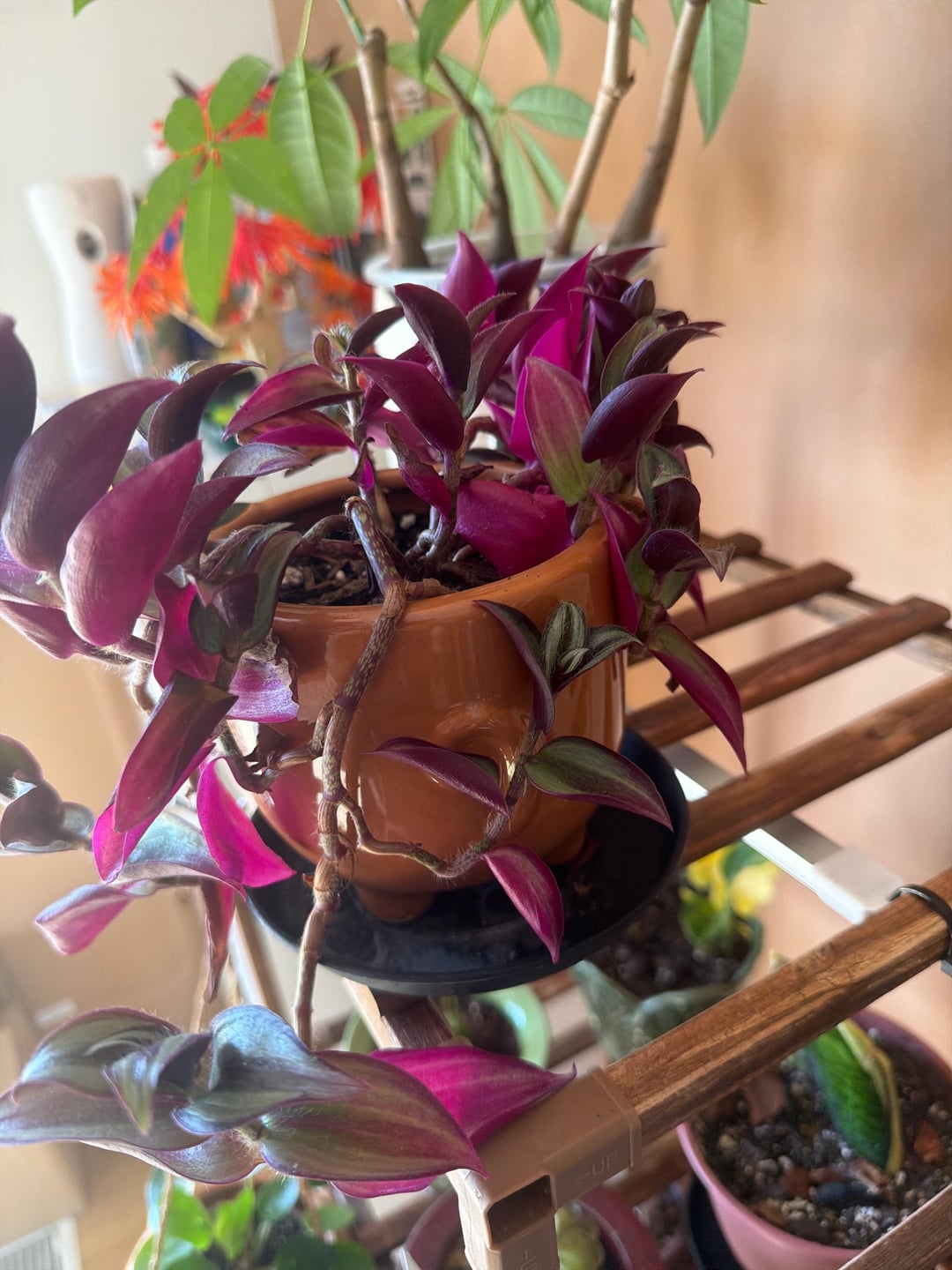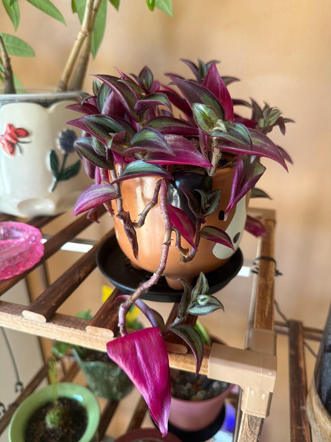 Ich bin mir ehrlich gesagt nicht sicher, was diese Pflanze ist, ich liebe einfach ihre Farben. Allerdings bin ich mir nicht sicher, ob es ihr gut geht oder nicht, weil ich sehe, dass sie an bestimmten Stellen Blätter verliert, obwohl sie an demselben Stängel immer noch wächst. Geht es mir gut oder sollte ich daran etwas ändern?