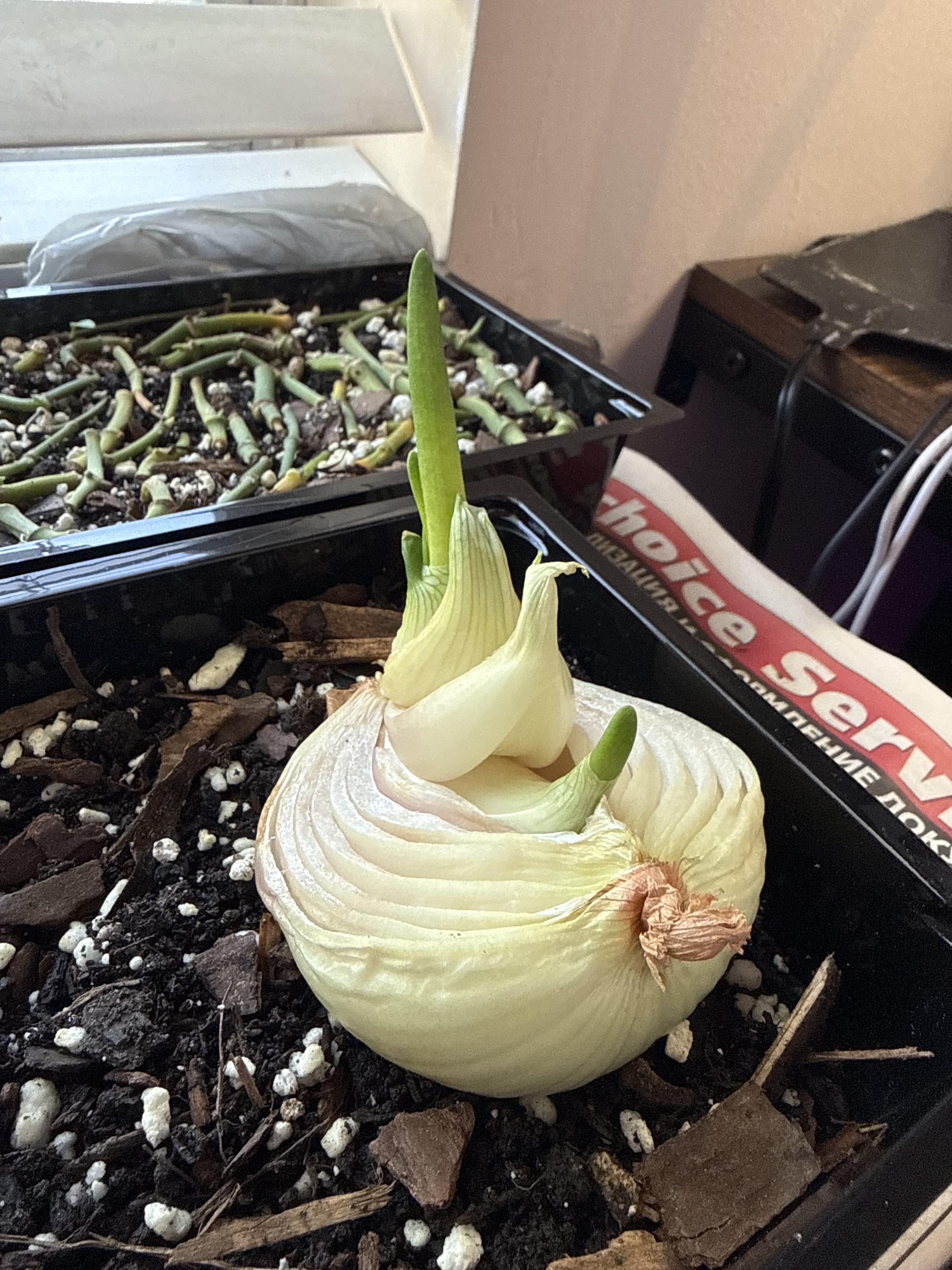Die Zwiebel begann im Kühlschrank zu sprießen!