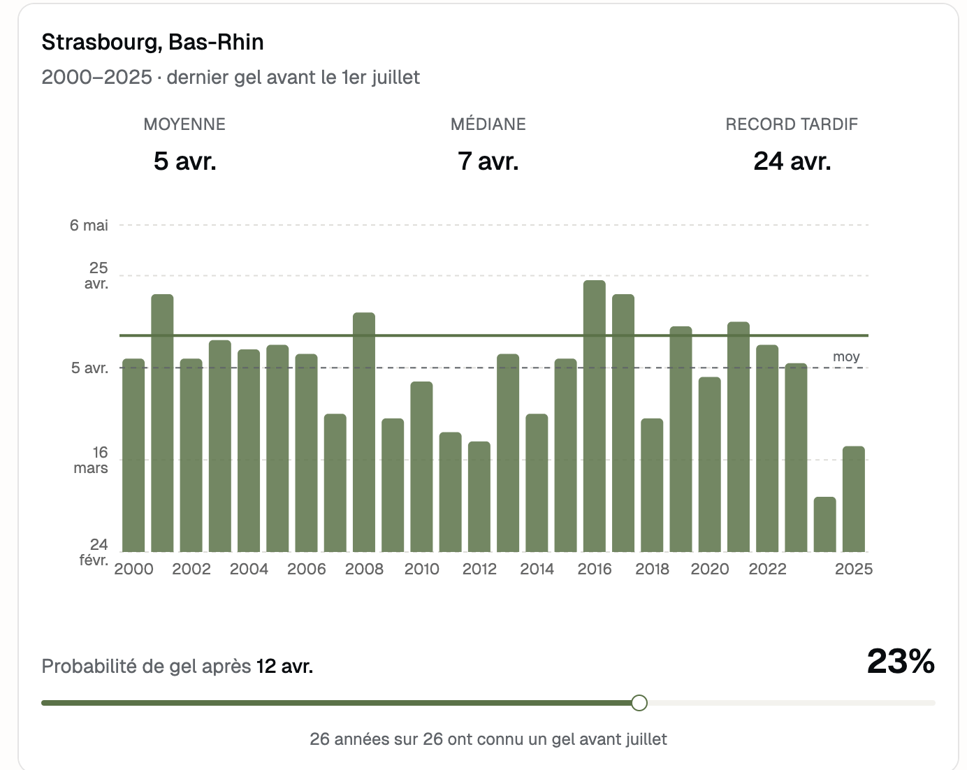 Ich habe mich gefragt, wie der letzte Frost in meiner Stadt verlaufen ist, und ich konnte die Informationen im Internet nicht finden. Deshalb habe ich eine Website erstellt, die den Verlauf für jede Stadt angibt: https://frozen-tomatoes.vercel.app/