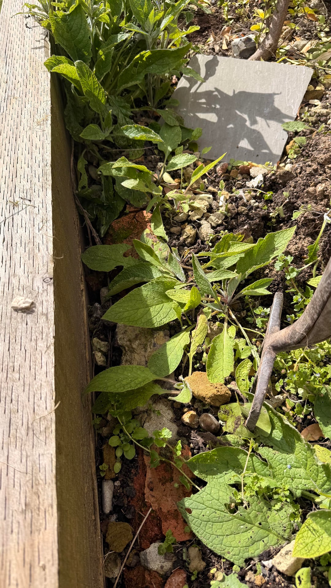 Ich bin vor knapp einem Jahr eingezogen und habe vor, dieses Schlafbeet in ein Gemüsebeet umzuwandeln. Mir ist aufgefallen, dass es eine Ziegelmauer gibt, an der die Vorbesitzer einfach die Schwellen vor eine alte Mauer gebaut haben, anstatt sie zuerst zu entfernen 🤔…
