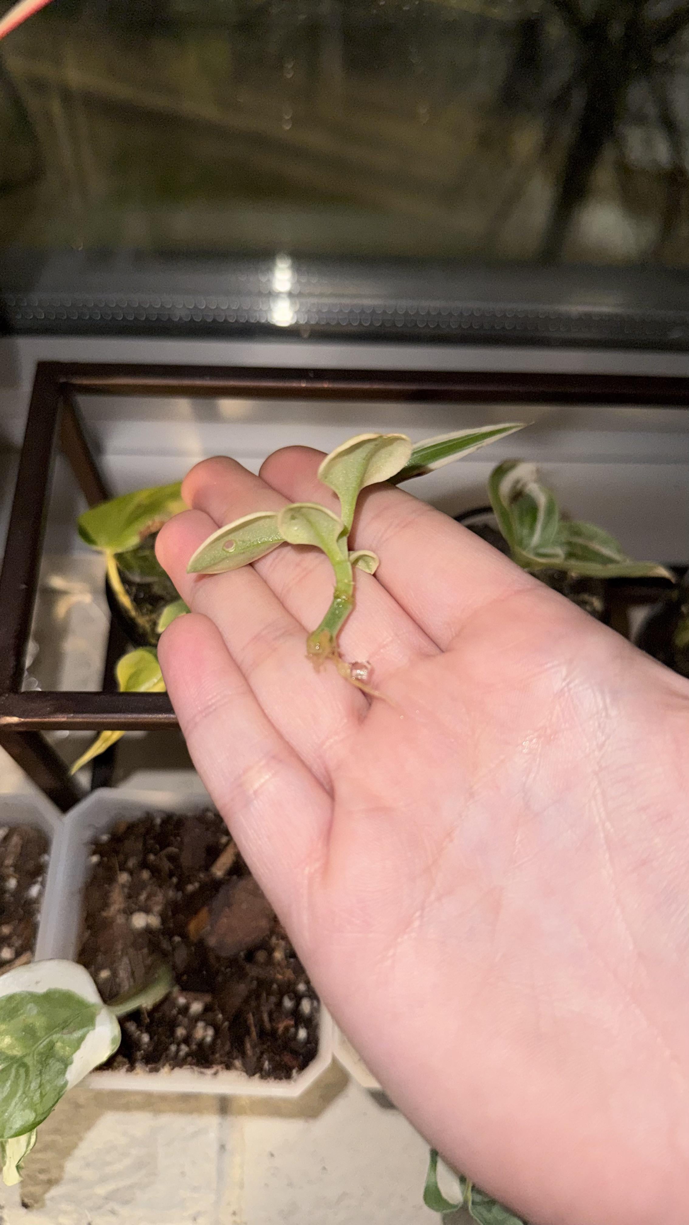 Ich hatte noch Wassergelee (wie Orbeez) vom Füttern meiner Kakerlaken übrig, also habe ich meine Pflanzen hineingeworfen, und ich denke, sie lieben es bisher, denn schauen Sie sich die Wurzeln dieser Aptenia an!! Von: methamphetamutt