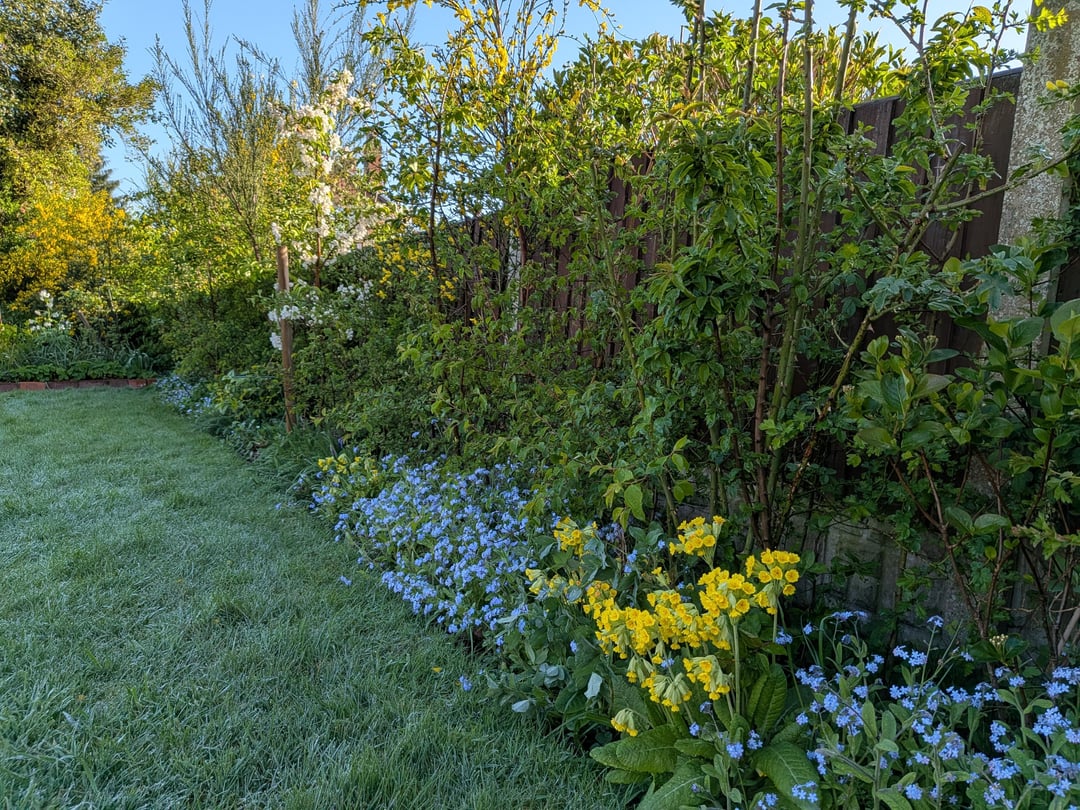 Ich frage mich, ob ich die Höhe dieses Jahr noch einmal kürzen sollte, um mehr Seitenwachstum zu fördern. Irgendwann würde ich den Zaun gerne entfernen oder einfach nicht ersetzen können, also habe ich vor, ihn mit anderen Pflanzen wie Geißblatt und Efeu zu bepflanzen, um im Winter mehr Schutz zu bieten, da er im Moment überwiegend laubabwerfend ist.