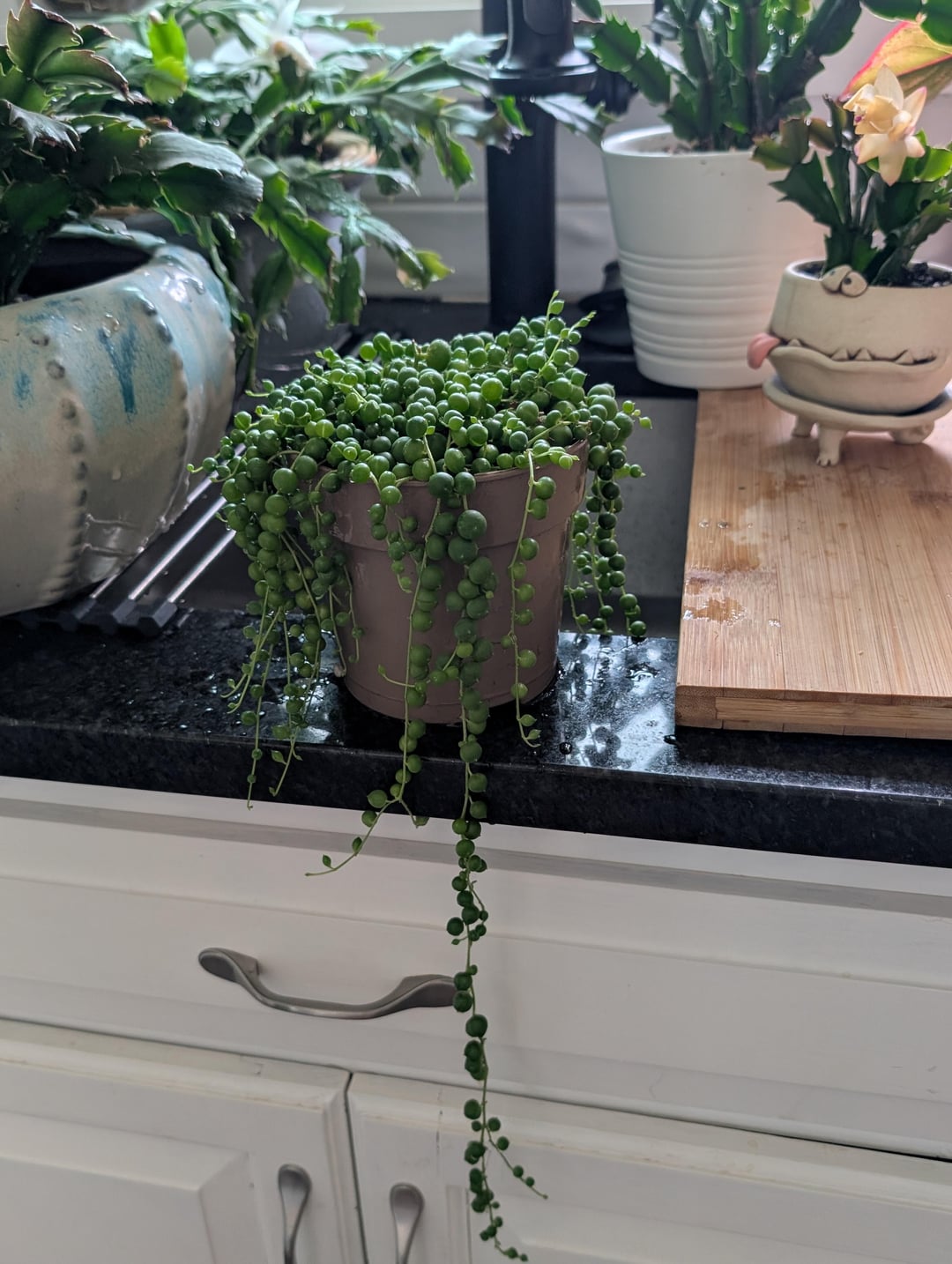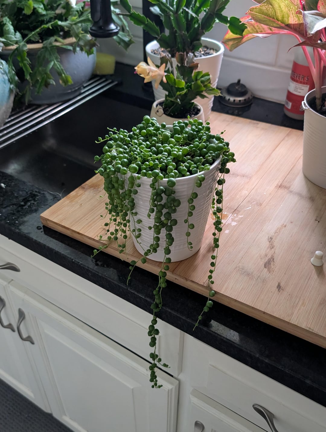 Wenn ich diese Bohnenpflanze zum ersten Mal besitze, hat sie zweimal geblüht, also finde ich sie glücklich, aber wann muss ich sie in einen größeren Topf pflanzen? Es hat Wurzeln, die aus dem Boden des Plastiktopfs herausragen.