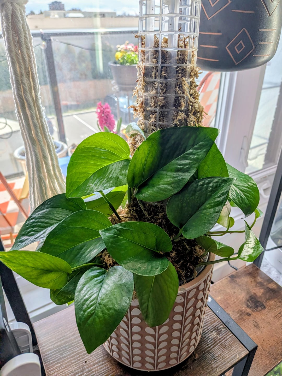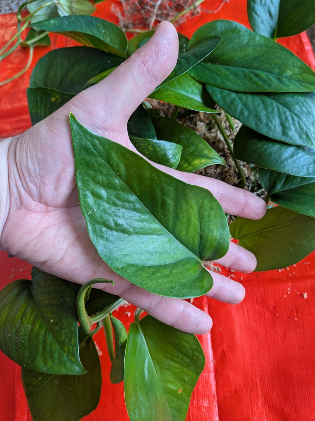 Man kann mit Sicherheit sagen, dass es so unglaublich gut geklappt hat, dass ich einen zweiten Moospfahl für sie anfertigen musste. Ihr größtes Blatt ist 5" von der Blattspitze bis zum Stängelanfang.