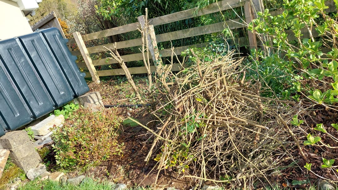 Ich habe so viele tote und morsche Bäume und Sträucher aus diesem Beet herausgerissen, und diese ganze Ecke ist traurig.