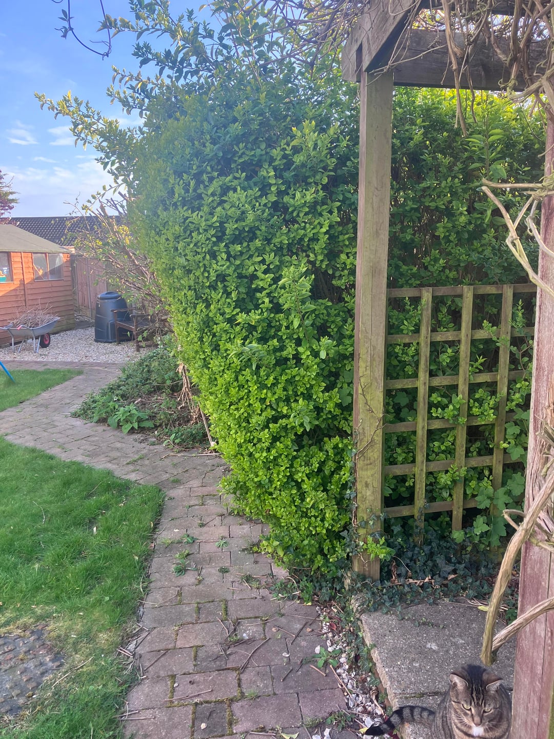 Ich möchte diese Hecke bis zur Pfostenlinie zurückschneiden.
