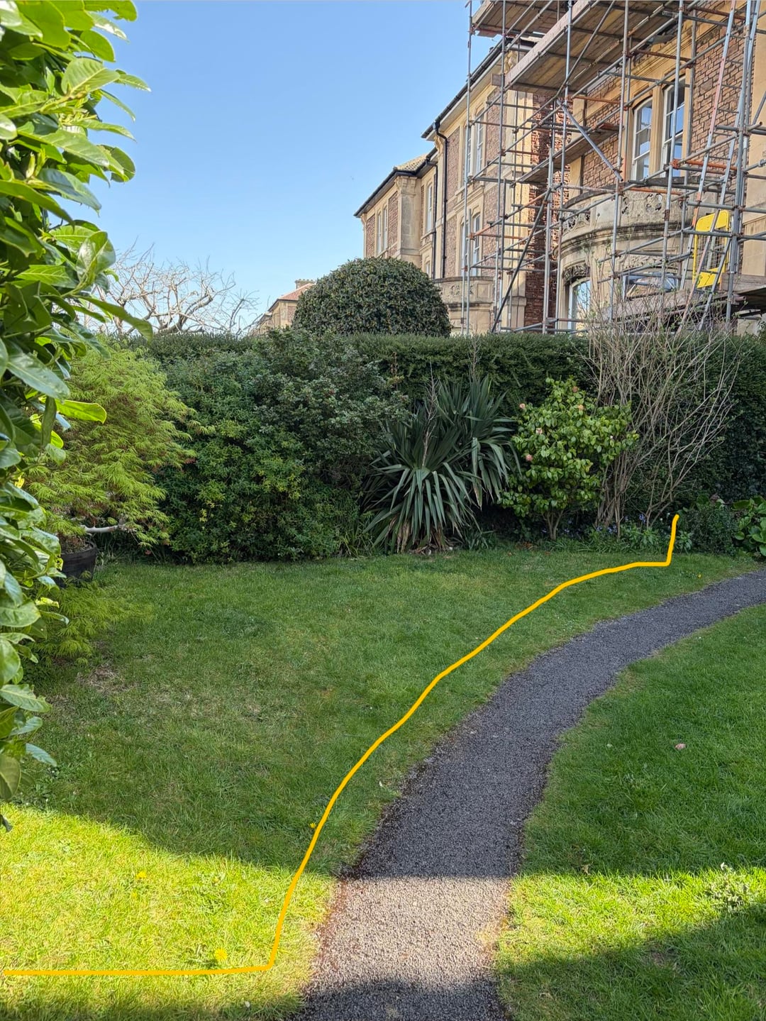 Ich möchte den oberen Teil des Weges abschirmen, um eine sonnige Terrasse zum Genießen eines Kaffees zu schaffen. Da es zur Straße hin liegt, möchte ich eine Art Sichtschutz nutzen, um etwas Privatsphäre zu schaffen, mit der Absicht, einige immergrüne Kletterpflanzen davor zu pflanzen.