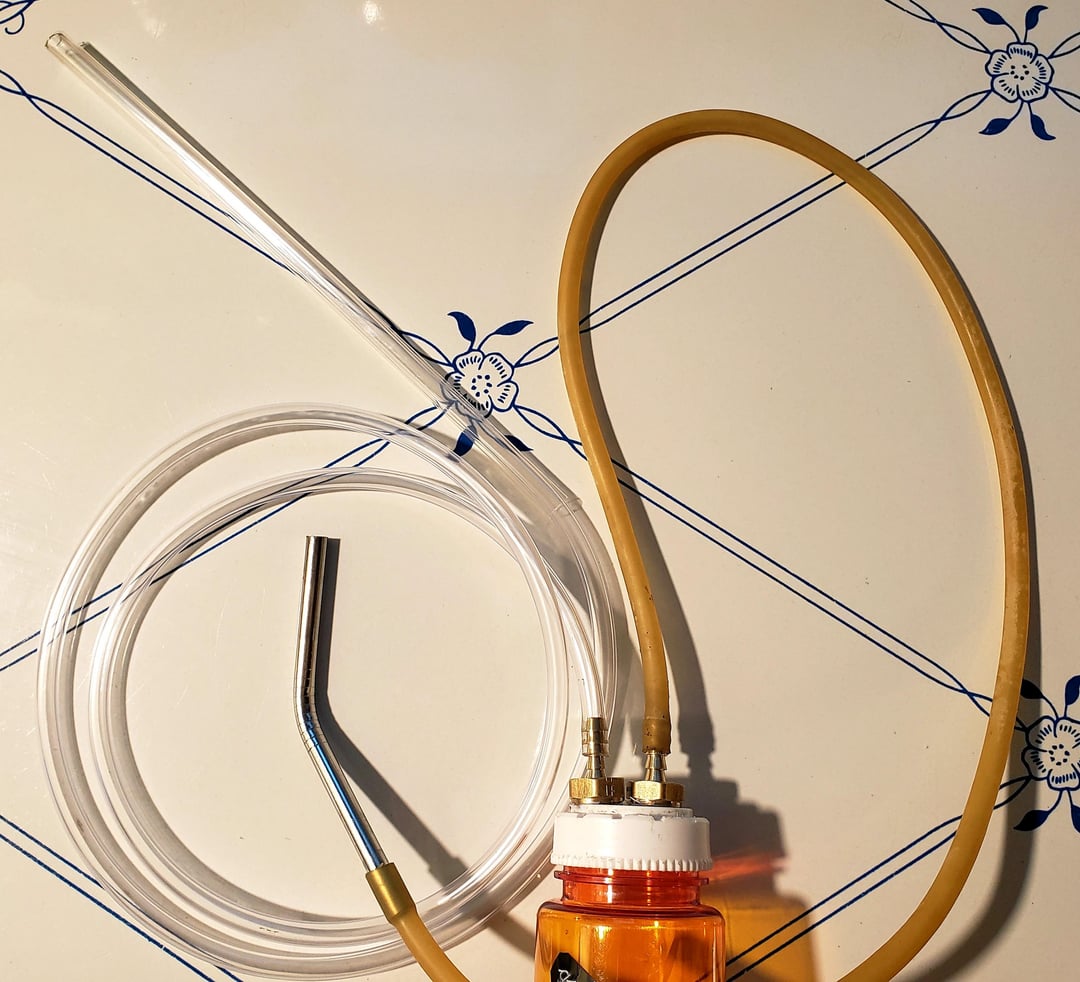 Diese Dinger (Insektensauger) heißen eigentlich Pooter, was mir am besten gefällt, abgesehen davon, dass sie Trauermücken aufsaugen. Ich habe es in meiner Garage mit einer alten Rezeptflasche, einigen Schläuchen, einem Gartenschlauch-Filtersieb und Armaturen von Home Depot gemacht (nicht notwendig; Heißkleber hätte gut funktioniert). Einfach selbst basteln oder selbst kaufen. Tötet Mücken!
