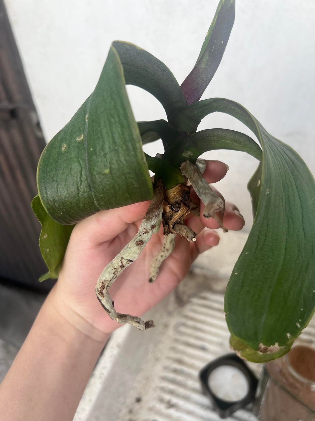Ich war zwei Wochen lang nicht in der Stadt, ich bin heute nach Hause gekommen und habe meine Orchidee so vorgefunden, meine Schwester hat meine Orchidee offenbar aus Versehen weggeworfen, sie hat das gesamte Substrat weggeworfen und es im Wasser gelassen, ich habe bereits alle Wurzeln abgeschnitten, die matschig aussahen und nach Papier schmeckten, und ich habe etwas Zimt hineingegeben, damit die Wunde besser schließen kann, kann sie noch gerettet werden? Ich habe bereits neues Substrat bestellt, aber was kann ich tun? Soll ich das Ding unten abschneiden, das tot aussieht? Es steht in der Nähe eines Fensters, aber direktes Sonnenlicht fiel normalerweise nie auf sie und sie hatte Kokosfasern als Substrat in ihrer Blumenerde