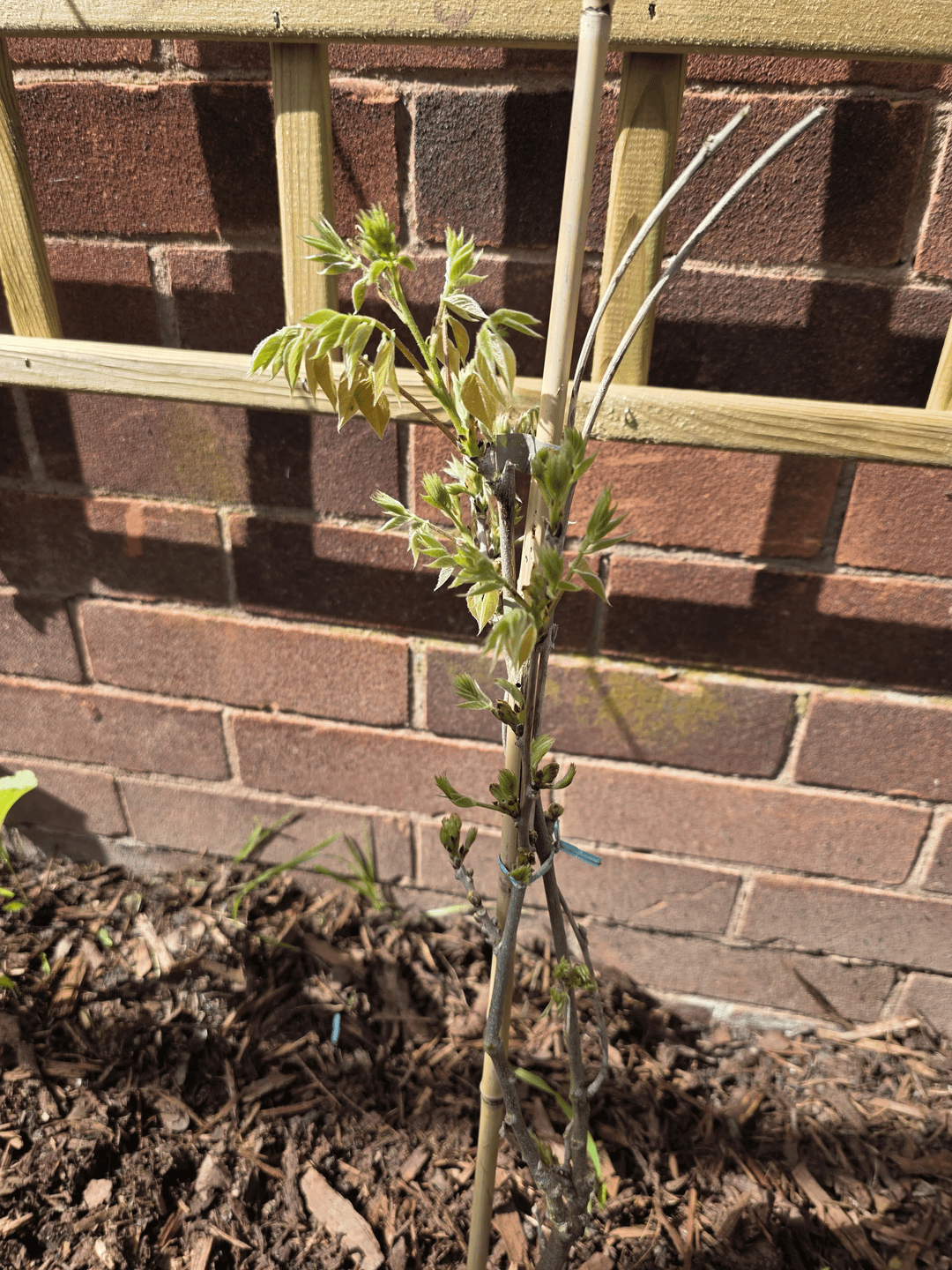 5 Monate später beginnt es neues Wachstum auszutreiben, nachdem es den Winter ohne Schutz überstanden hat.