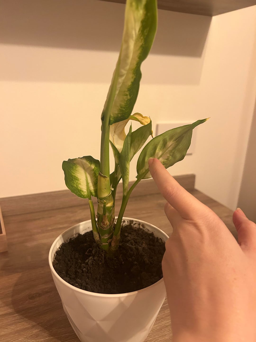 Ich habe das vor ein paar Tagen geschenkt bekommen und bin mir nicht sicher, was ich damit machen soll. Die Blätter sind alle sehr dicht zusammengepackt und stammen von sekundären Stängeln (im Gegensatz zu meiner anderen Dieffenbachie, die an der Unterseite einen etwas kahlen Stängel hat und sich die Blätter dann schön ausbreiten).