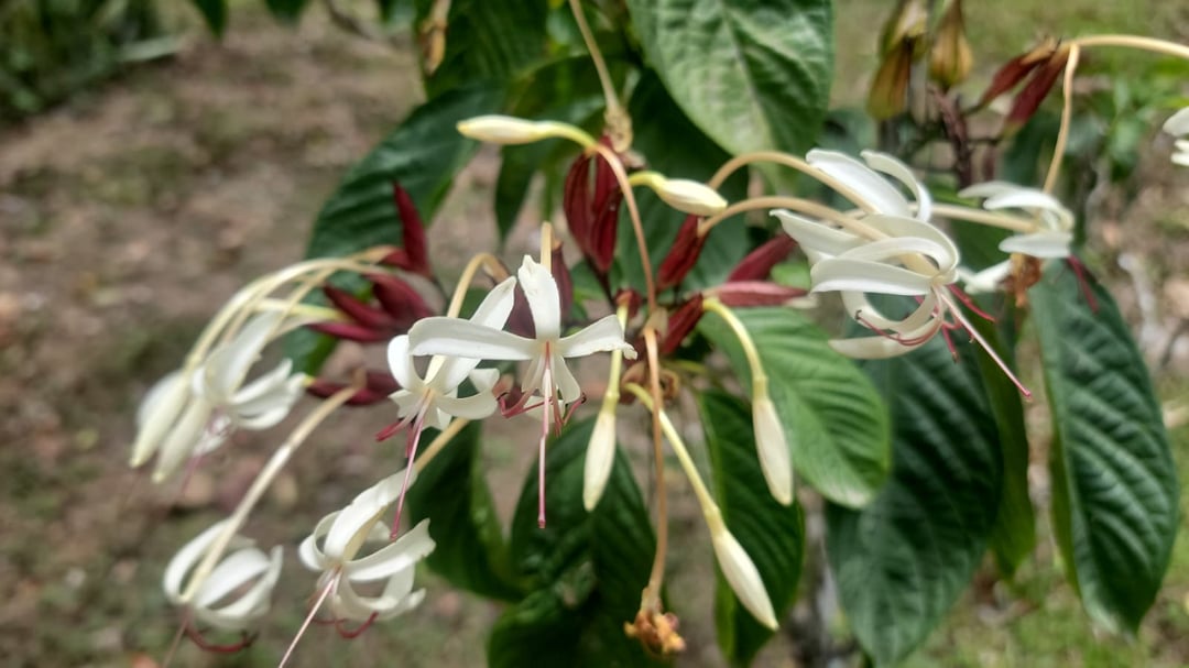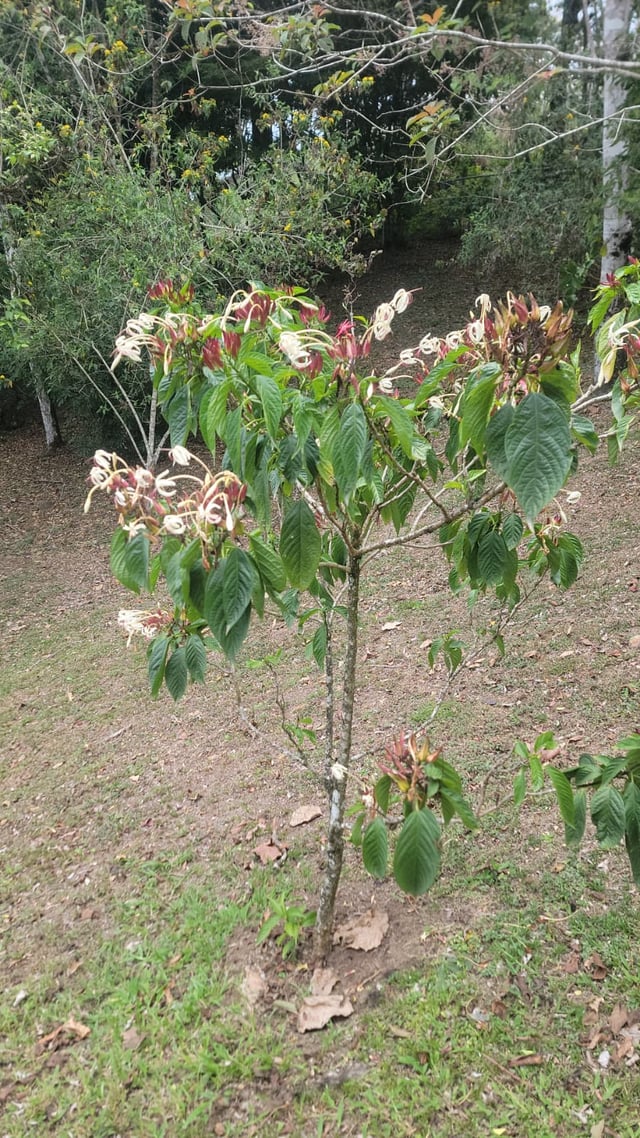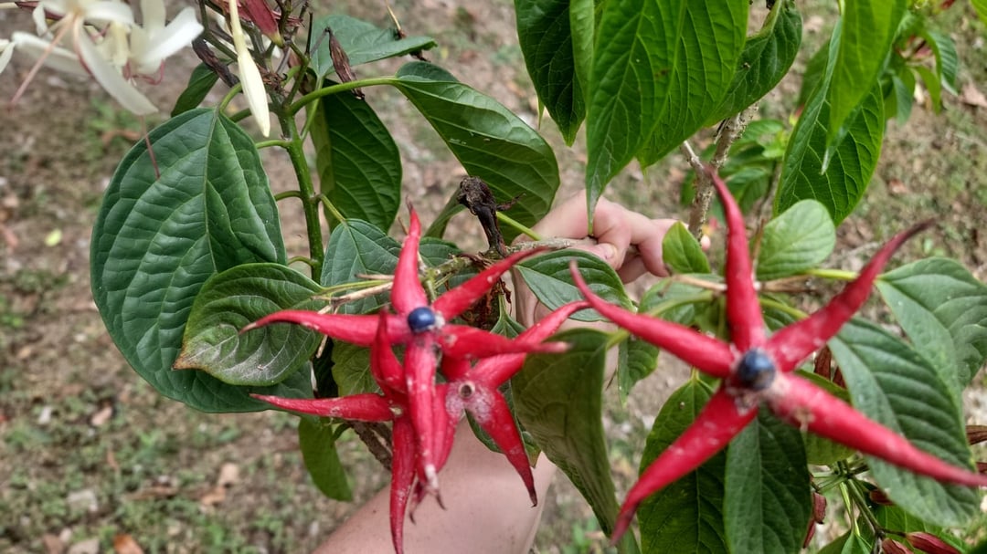 Das ist mein Clerodendrum minahassae die ich vor etwa 1,5 Jahren für meinen Garten in Panama gekauft habe. Die Größe hat sich verdreifacht! Diese Pflanze ist für ihre wunderschönen Blüten und äußerst ungewöhnlichen Früchte bekannt – eine rote Sternform mit einer blauen Beere in der Mitte!