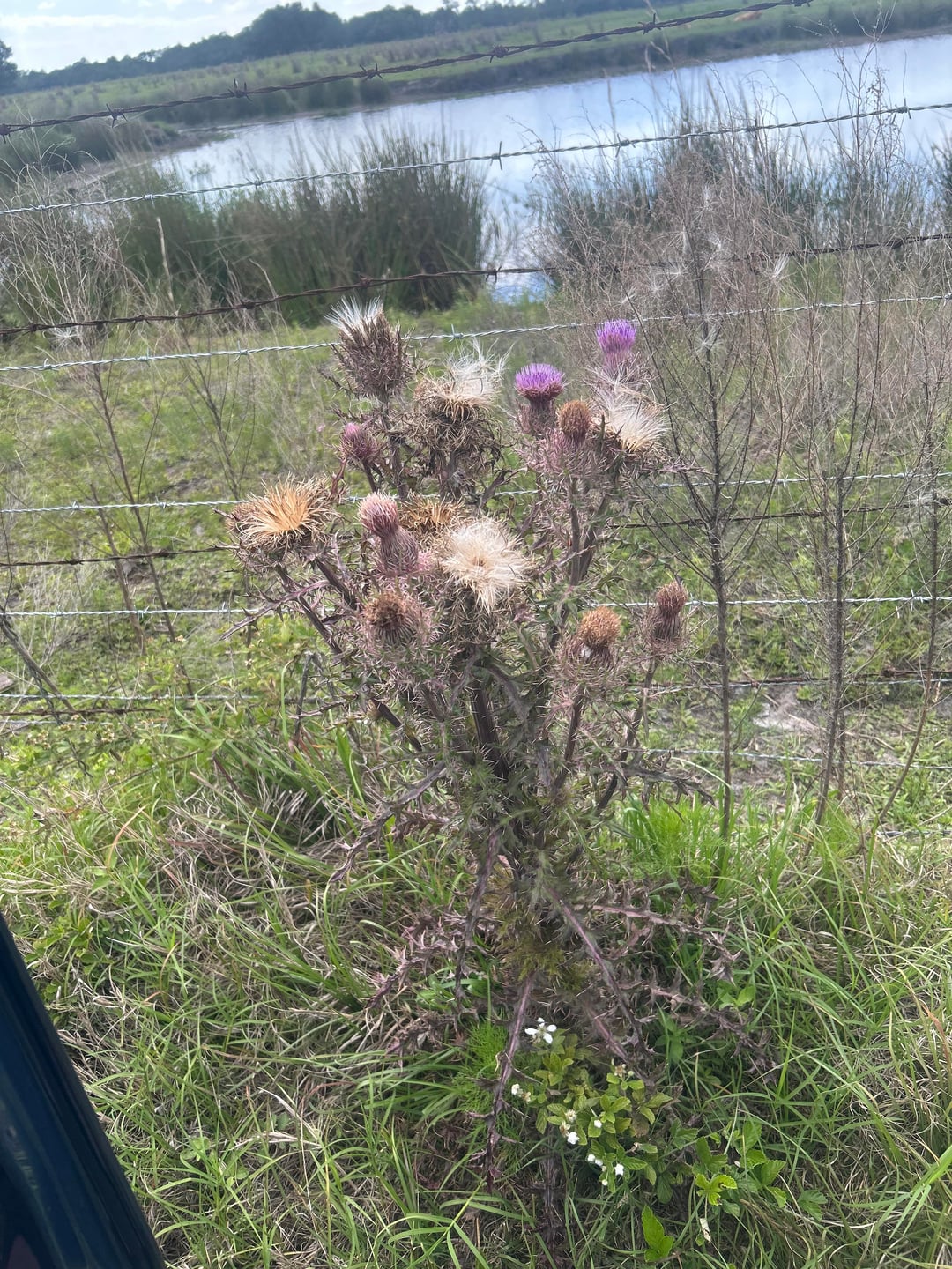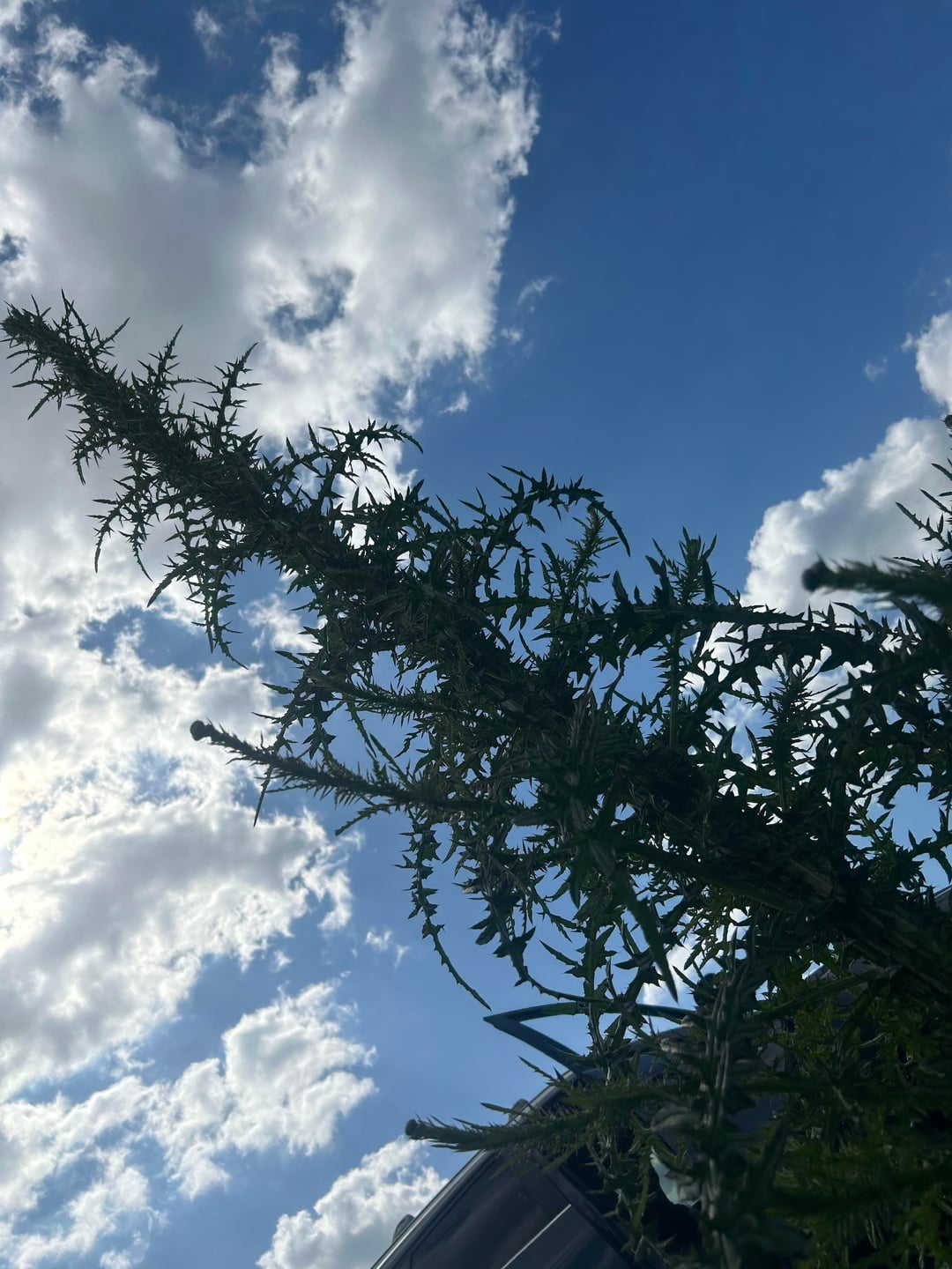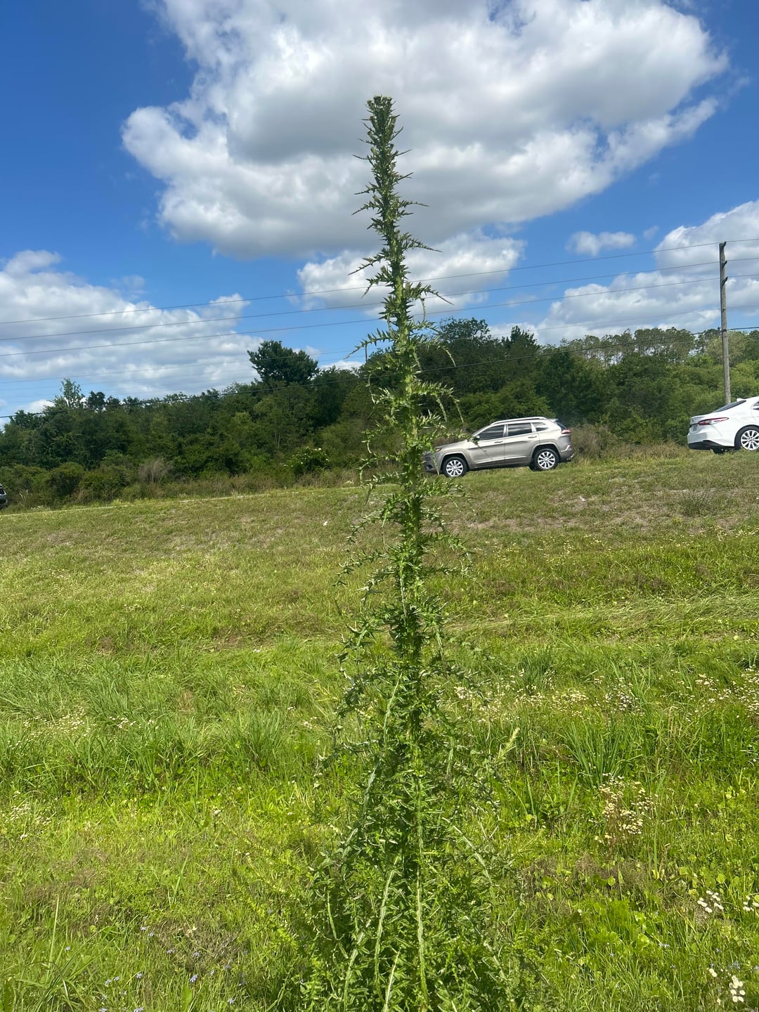 Ich habe auch eine Menge Bullendisteln gefunden, aber diese stach heraus, sie ist etwa 8 Fuß hoch und 3 Zoll dick, viel höher als mein Auto. Wenn jemand herausfinden kann, um welchen Typ es sich handelt, wäre das großartig, da es in meinem Garten einen ähnlich aussehenden gibt
