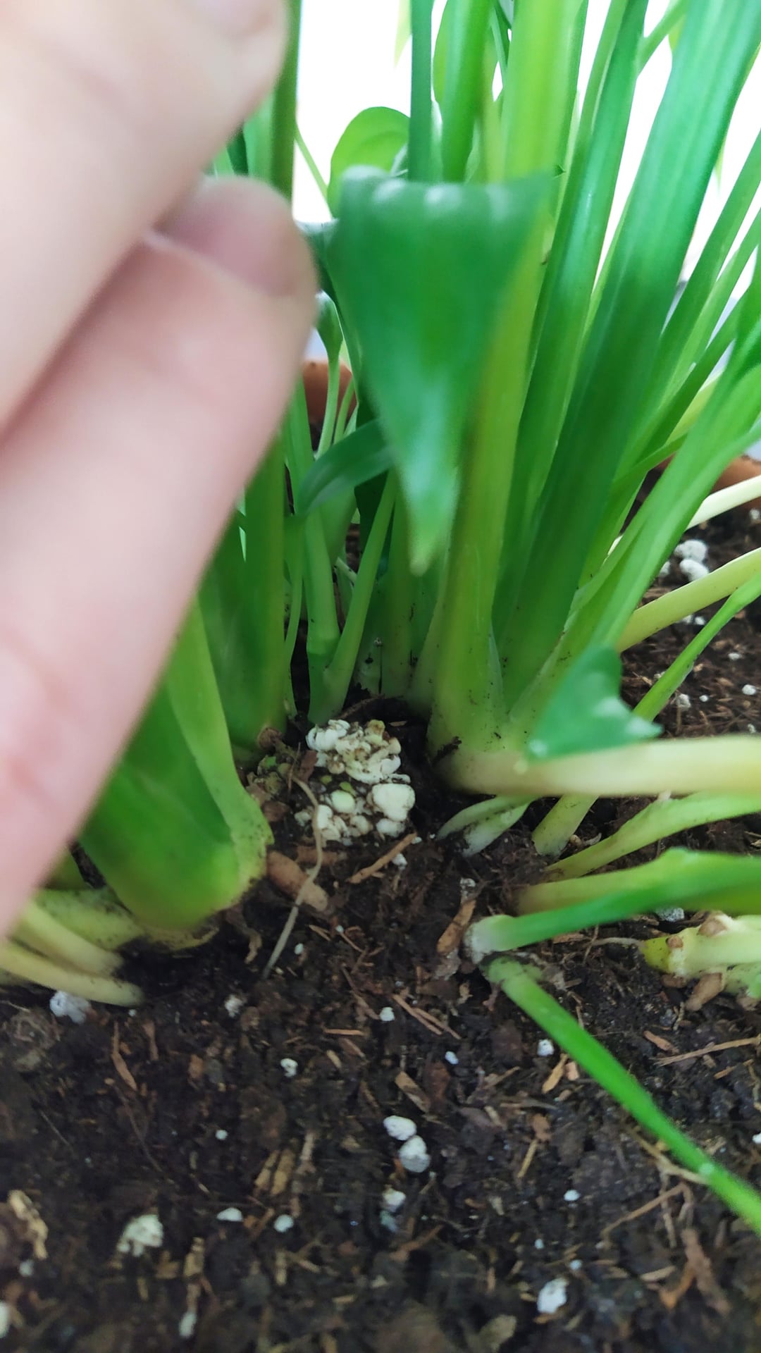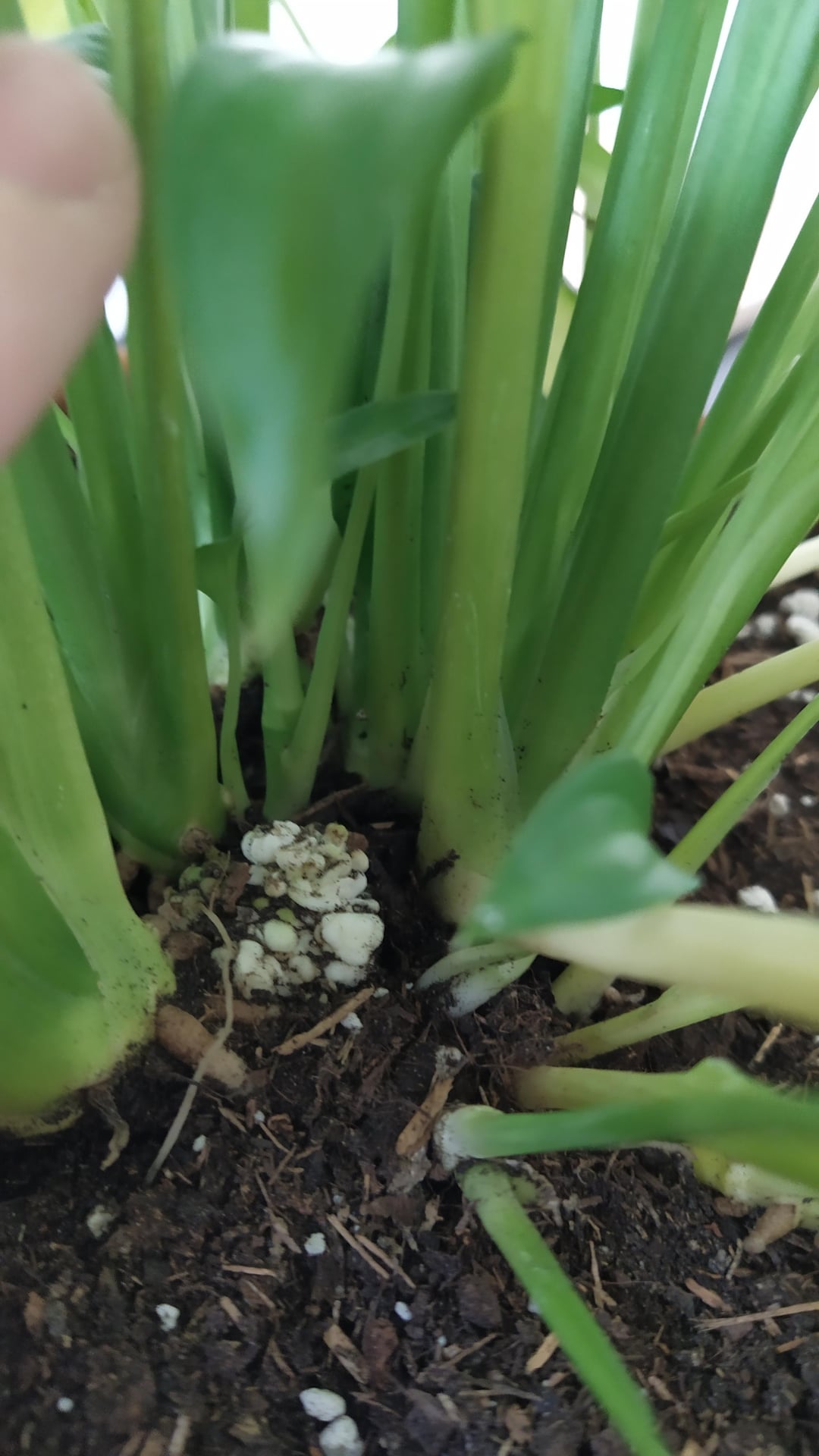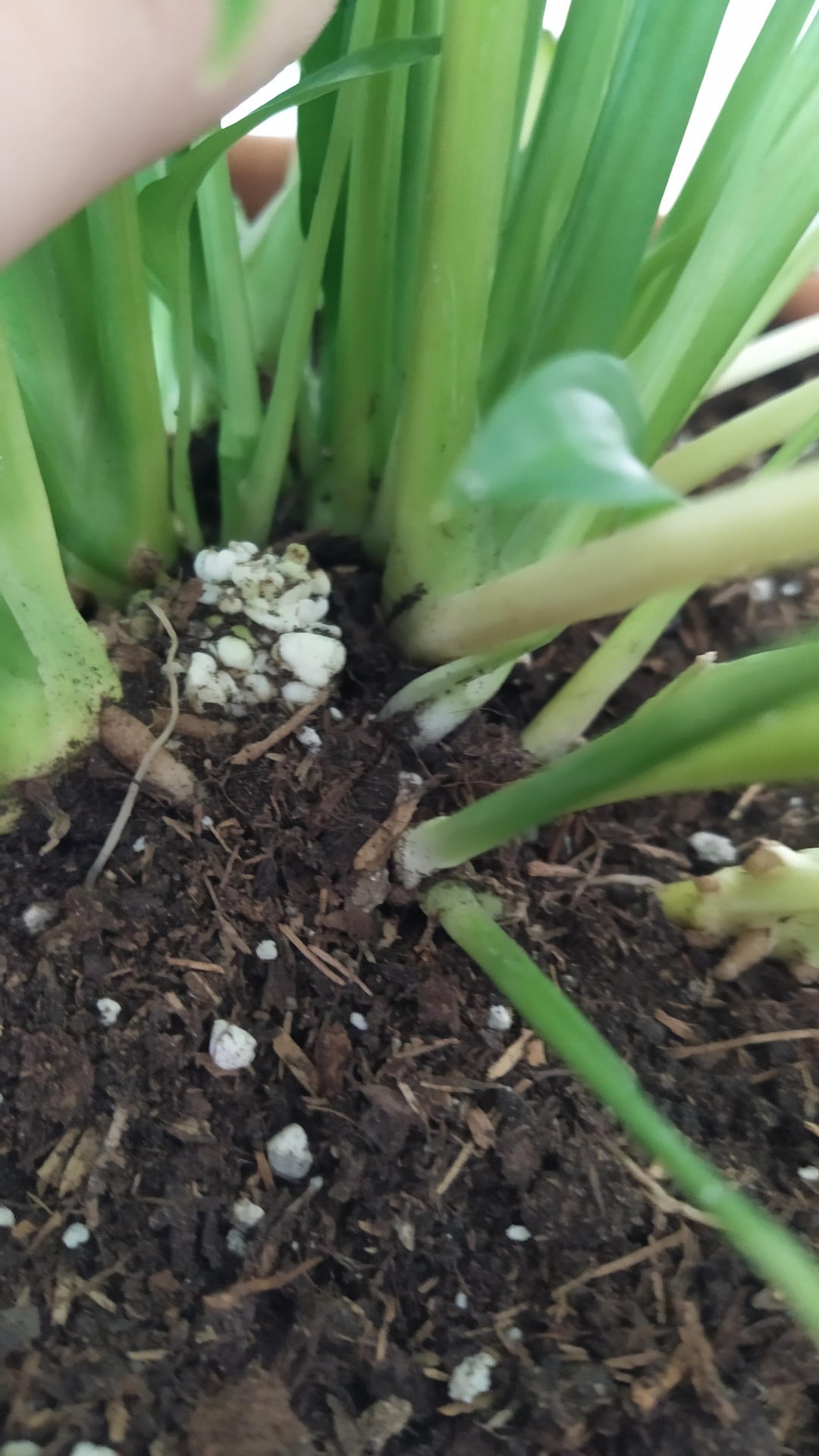 Als ich sie jedoch vor ein paar Tagen in einen größeren Topf umpflanzte, bemerkte ich, dass sie in der Mitte dieses seltsame harte weiße Knötchen hatte? Es ist zu schwer, ein Pilz zu sein, und es fühlt sich definitiv so an, als ob er mit der Pflanze verbunden wäre.