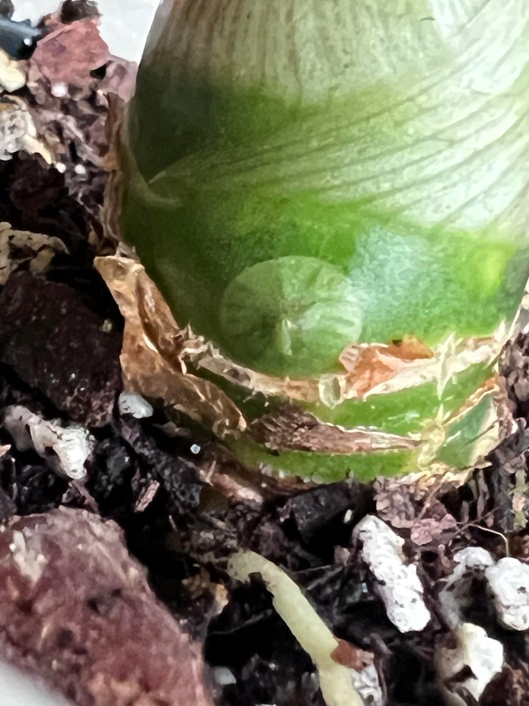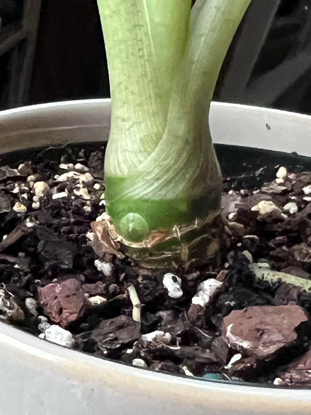Ich habe diesen Frydek seit ungefähr einem Monat und mir ist dieses kreisförmige Wachstum vor einiger Zeit aufgefallen. Ich dachte zunächst, dass es eine Luftwurzel sein würde. Das ist jedoch noch nicht geschehen und in letzter Zeit wirkt die Pflanze nur noch sehr traurig und schlaff. Irgendeine Idee, was das Problem sein könnte?