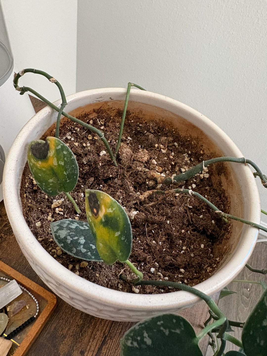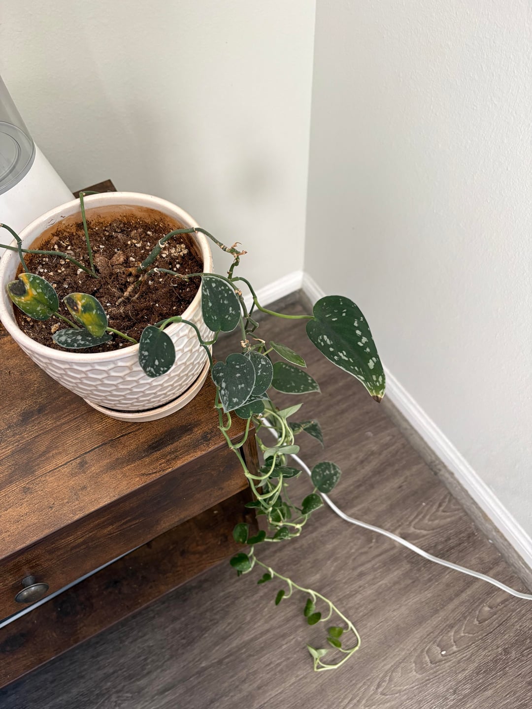 Ich habe diesen Satin-Pathos jetzt schon seit Jahren und er ist größtenteils relativ zufrieden, aber er beginnt sehr langbeinig zu werden und die oberen Blätter vergilben nicht mehr. Ich habe es kürzlich verschoben, da ich dachte, es sei ein Sonnenschaden, aber jetzt vergilbt es stärker. Sollte ich schneiden und umtopfen?