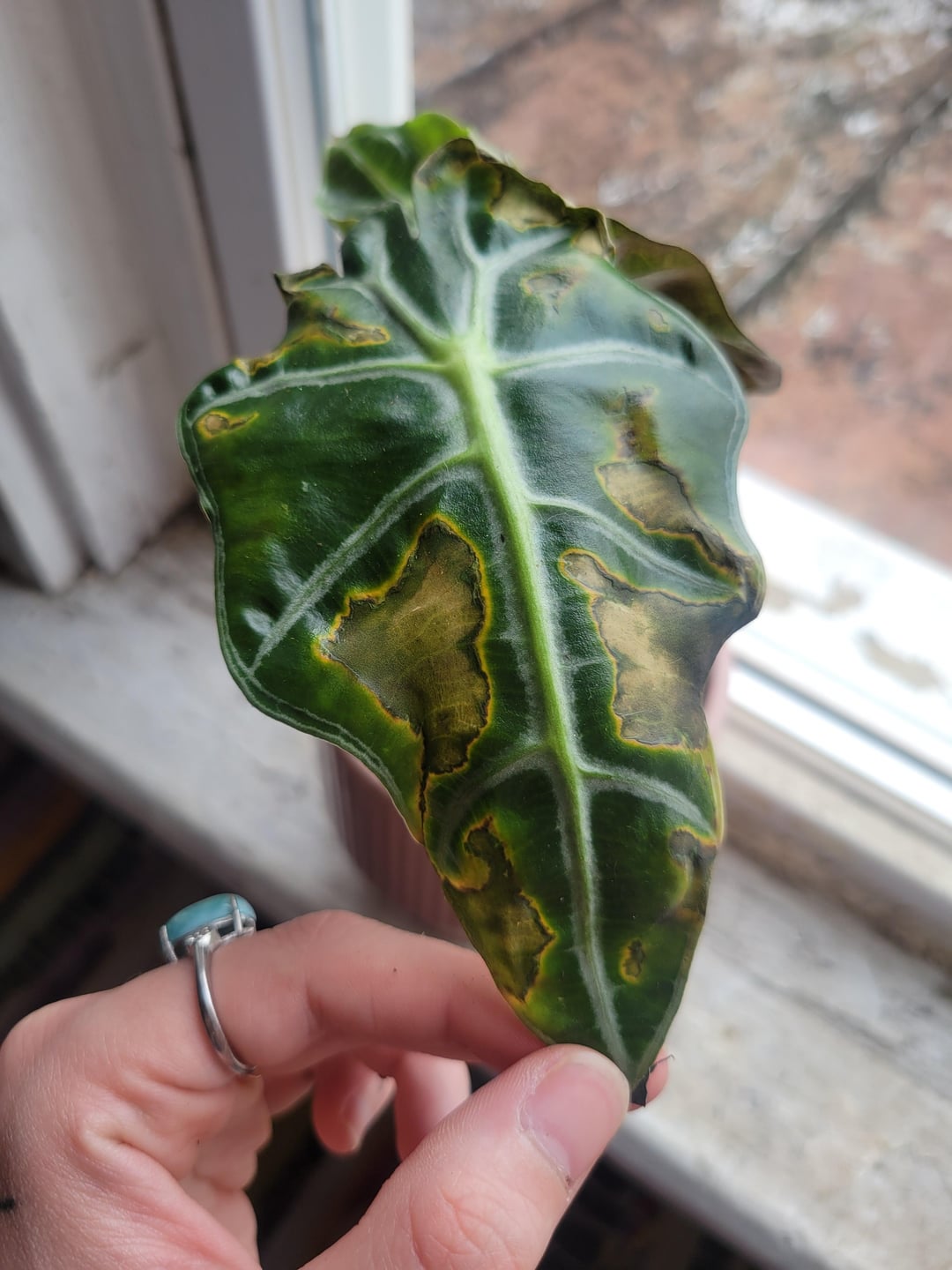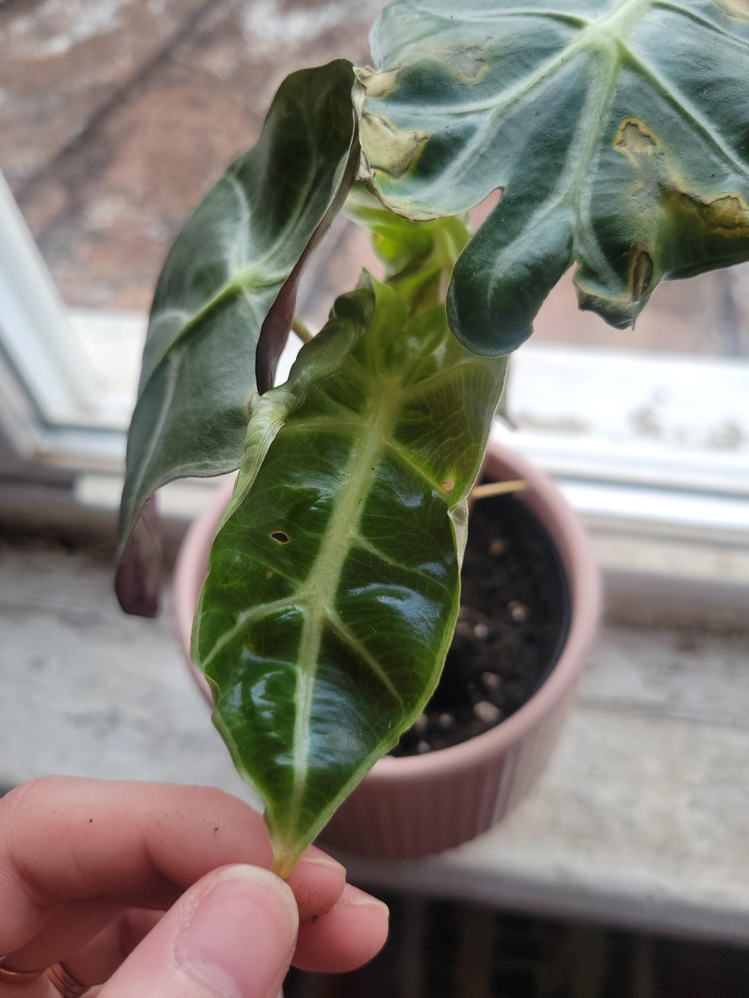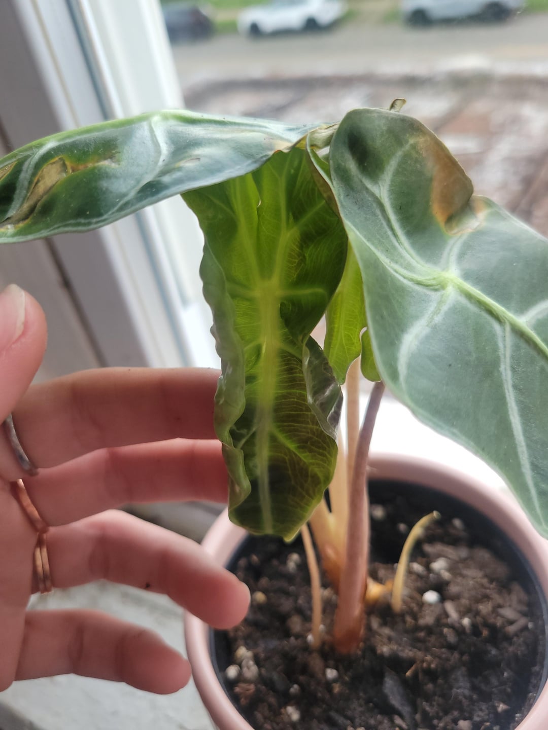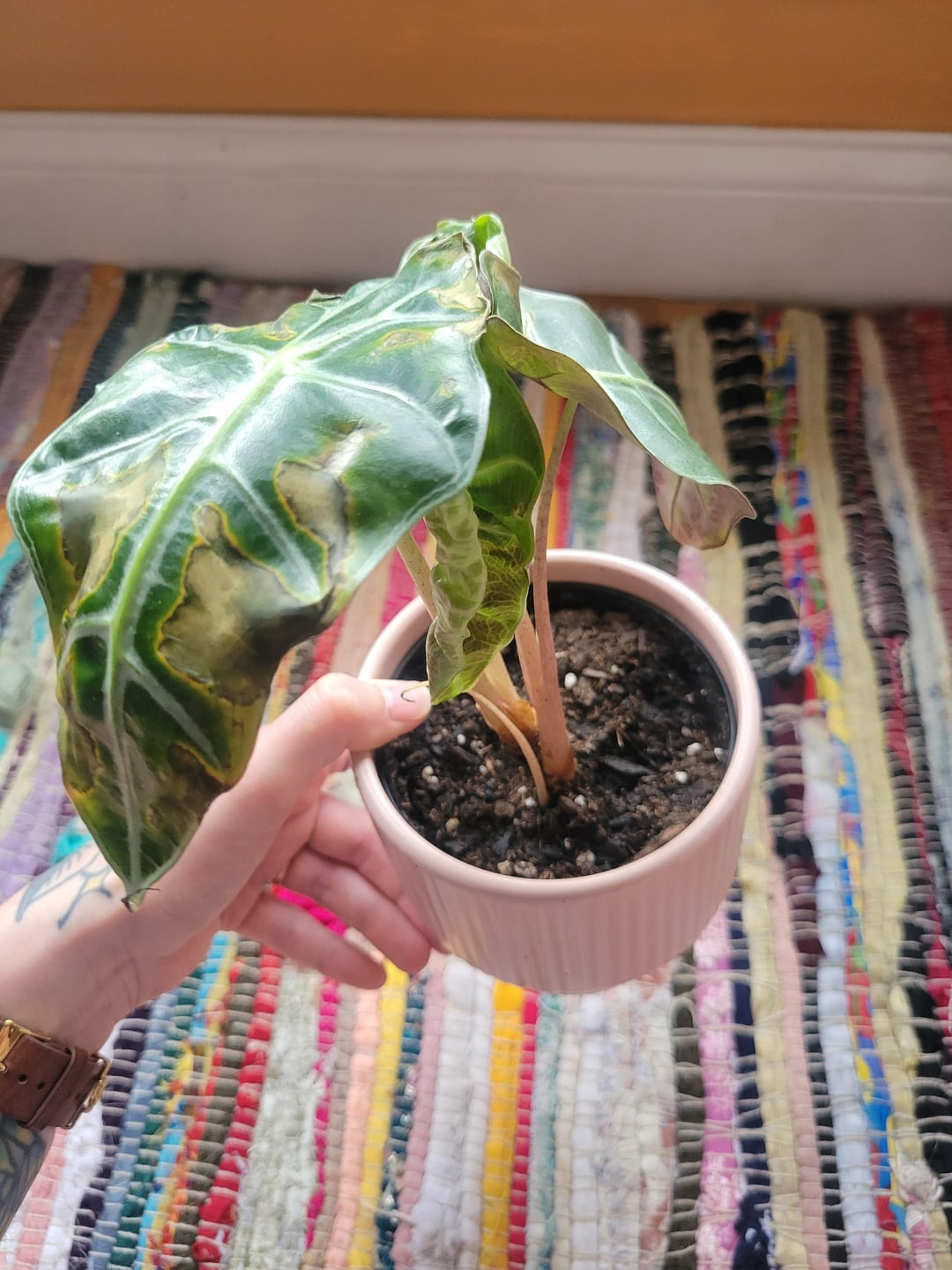 Vor ein paar Tagen habe ich diesen Polly für 6,91 $ aus einem Ausverkaufswagen gerettet! aber sie sieht etwas rau aus … Ich bin neu im Umgang mit Pflanzen und hatte noch nie eine Alokasie. Gibt es irgendwelche Tipps, um dieses kleine Mädchen zu retten??