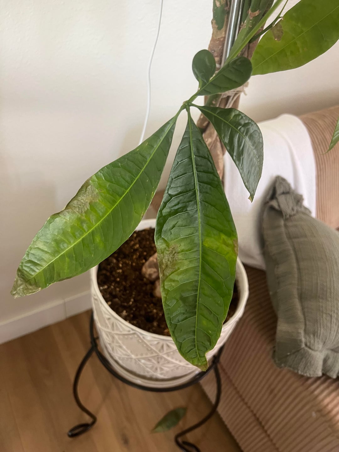 3. I wonder if this could be the start of a bacterial infection caused by irregular watering or staying too wet for too long. The discoloration on some of the middle leaf veins makes me think it’s more than just a watering issue. Look into using diluted hydrogen peroxide for soil health and low-level treatment maybe? It can be used at different concentrations based on how sick the plant is (although too high of a concentration or straight HP will make the root cells explode). I usually do about one cup of HP per gallon of water.