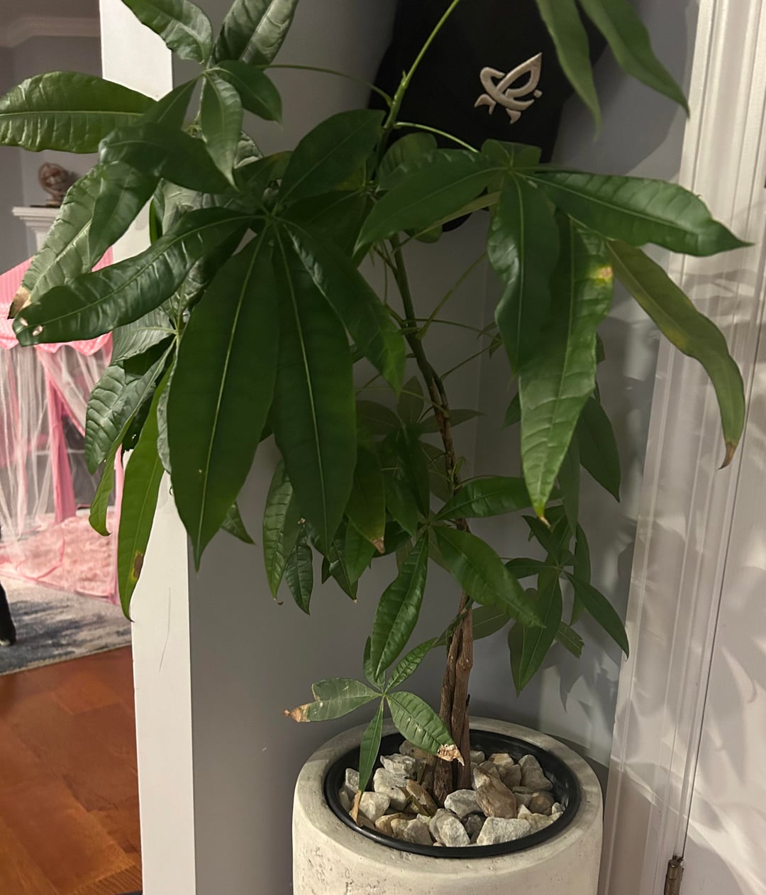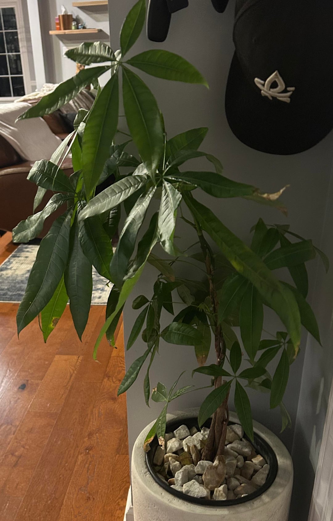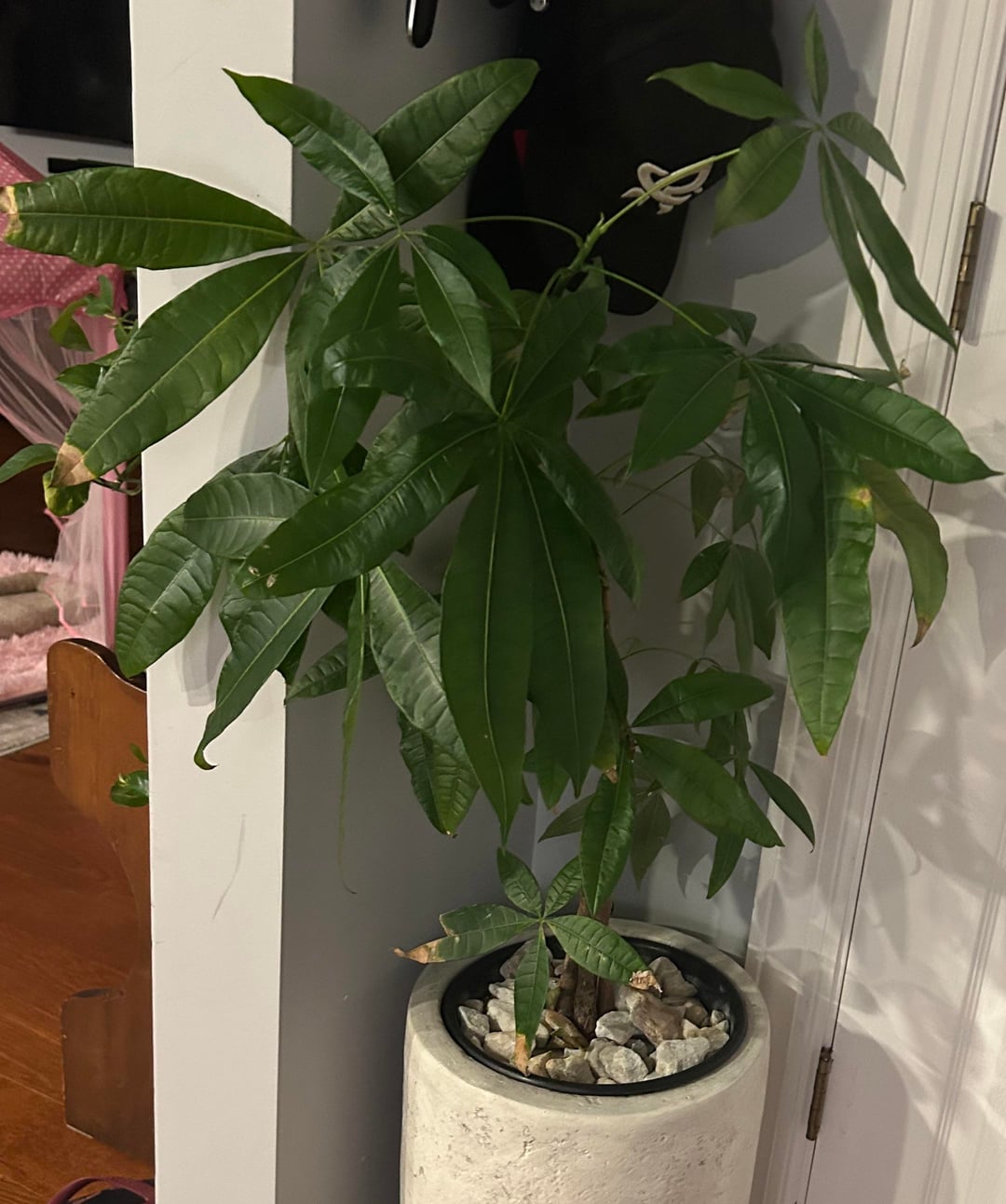 Mein Geldbaum ist groß und schlaksig, er steht an einem Platz in der Nähe eines nach Osten ausgerichteten Fensters und einer Wachstumsbeleuchtung.