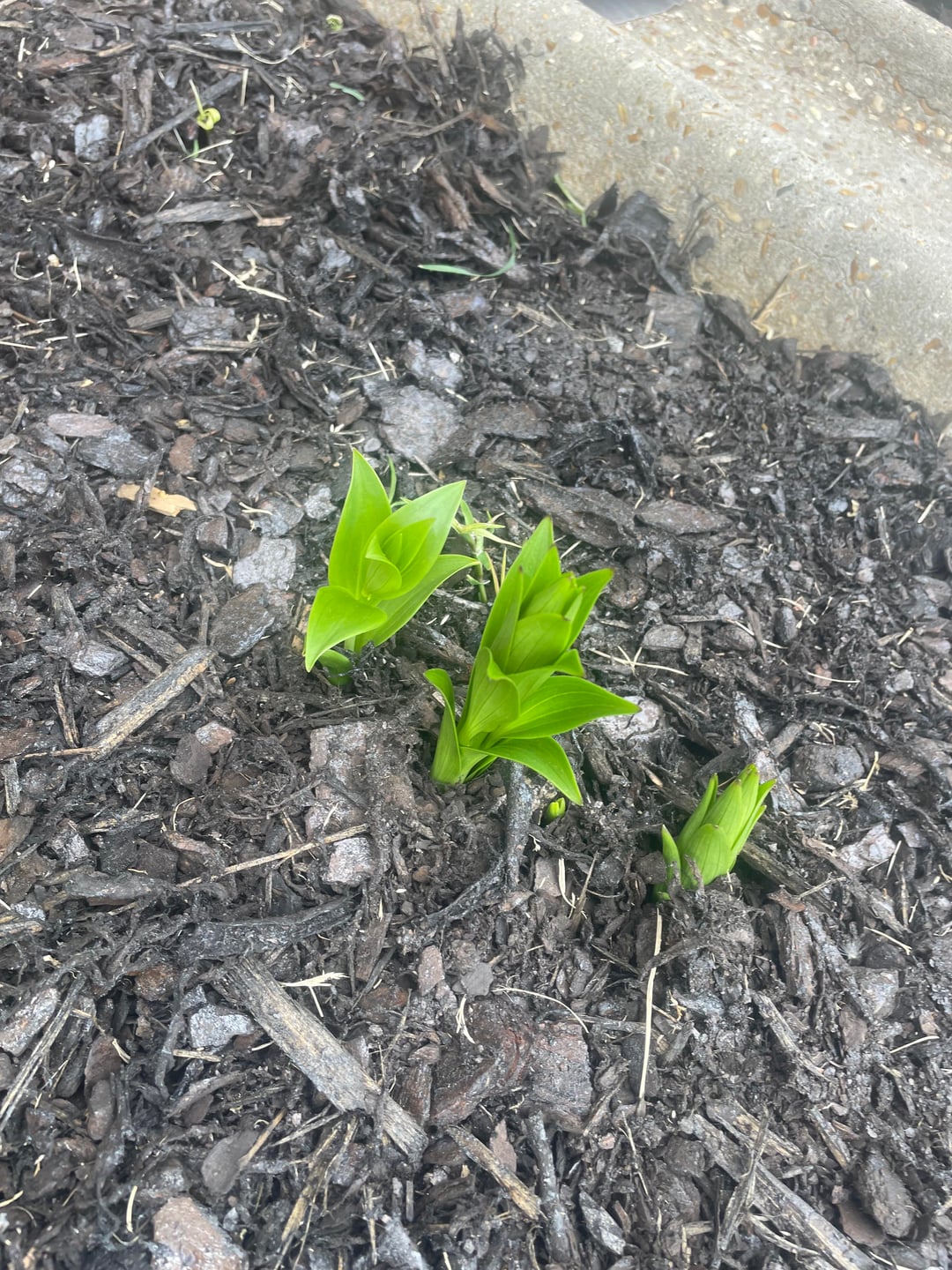 Ich habe dieses Blumenbeet letztes Jahr angelegt und es war nicht sehr erfolgreich. Zone 8, den ganzen Tag Sonne. Ich hatte eine Art Lilie und etwas anderes gepflanzt, an das ich mich nicht erinnere, und sie haben nicht überlebt. Ich hatte auch Probleme, weil ich darüber ein am Fenster montiertes Vogelhäuschen hatte und die Vögel die Samen zerkratzten und ich einen Haufen zufälliger Vogelsamen wuchs. Letzten Monat habe ich das Futterhäuschen für Vögel abgeschafft und das Beet neu gemacht, aber jetzt wächst etwas und ich habe noch nichts gepflanzt. Ich weiß nicht, was ich pflanzen soll? Hat jemand eine Idee, was das ist?