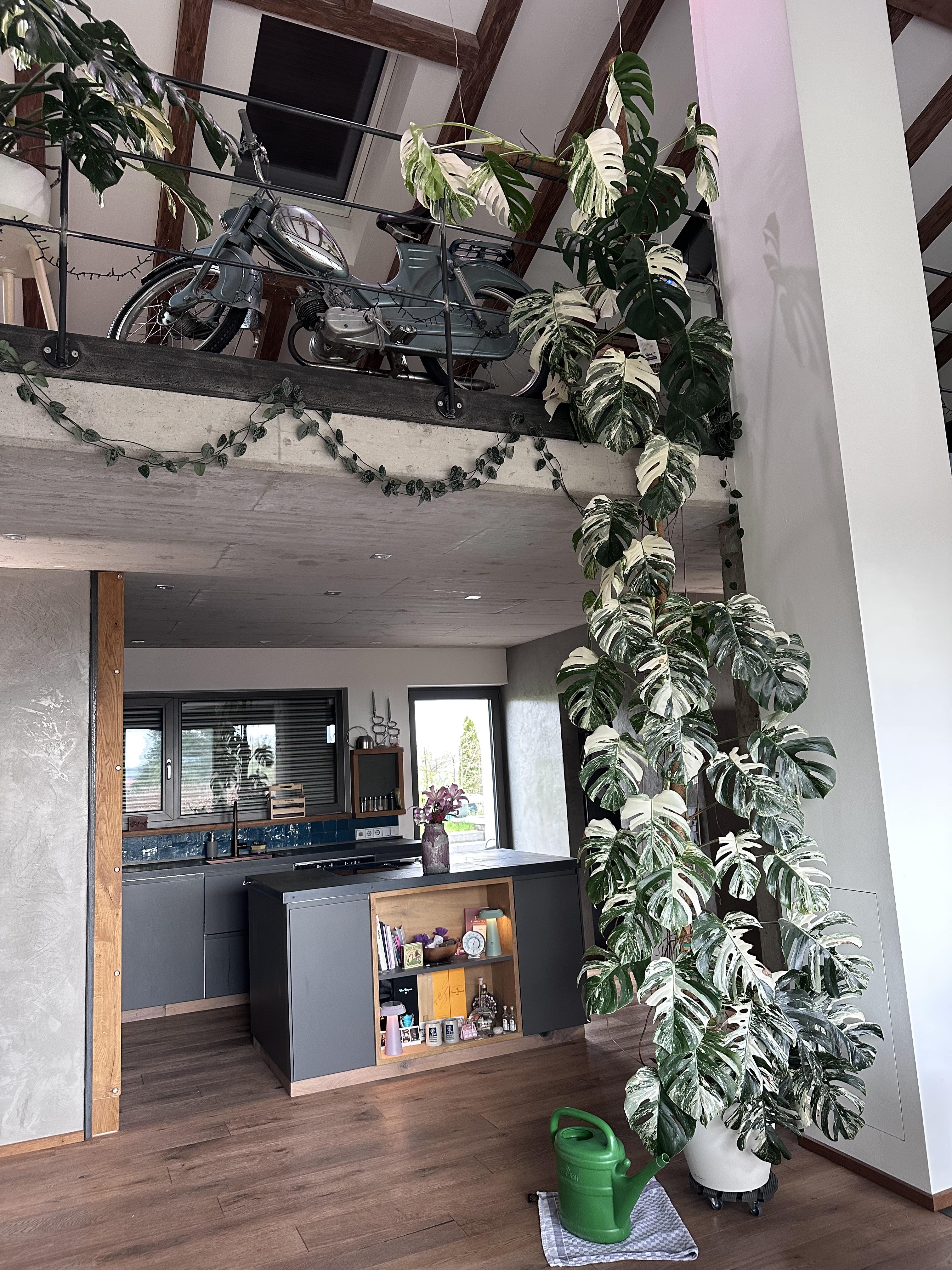 Sehr schöne Monstera aber was ist mit dem Moped im Obergeschoss?