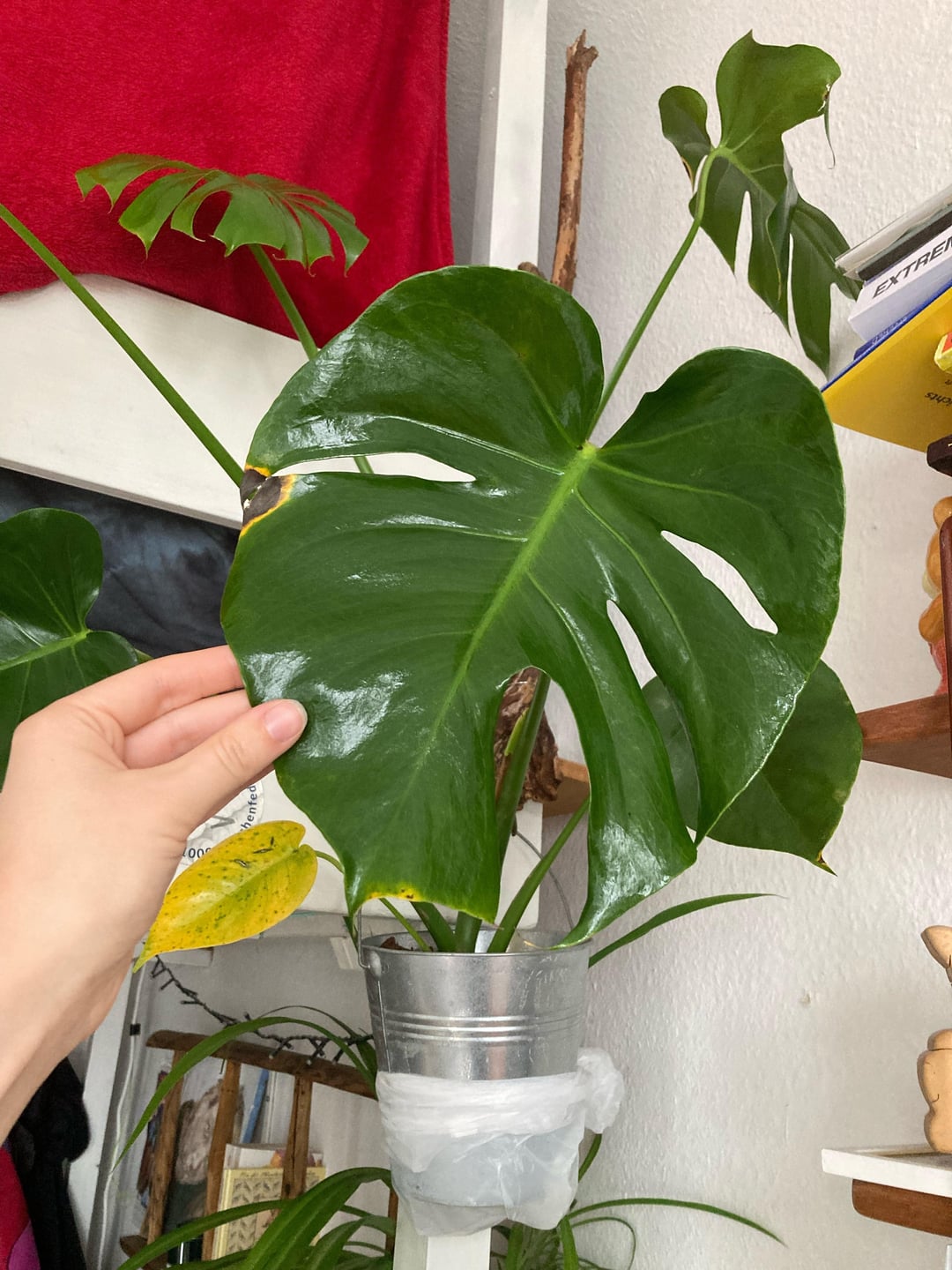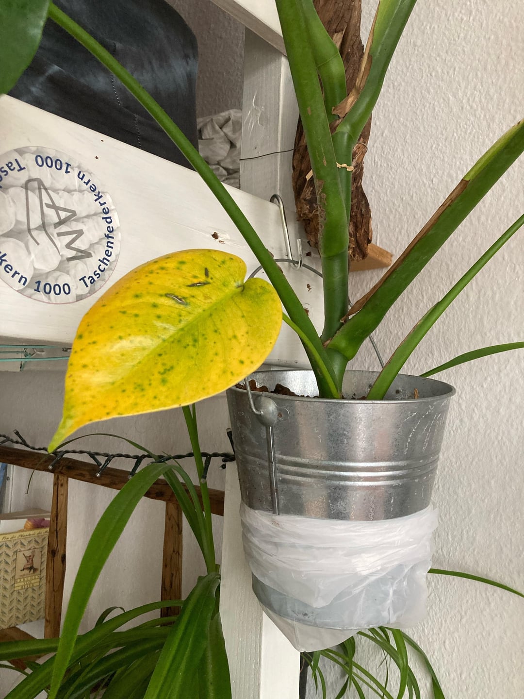 Ich habe meine Monstera vor ein paar Tagen separiert und als Einzelpflanze umgetopft und seitdem bilden sich diese braunen Flecken mit gelbem Rand.