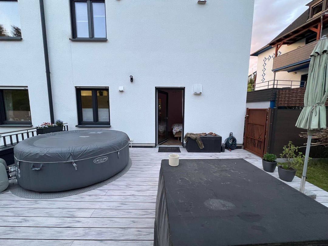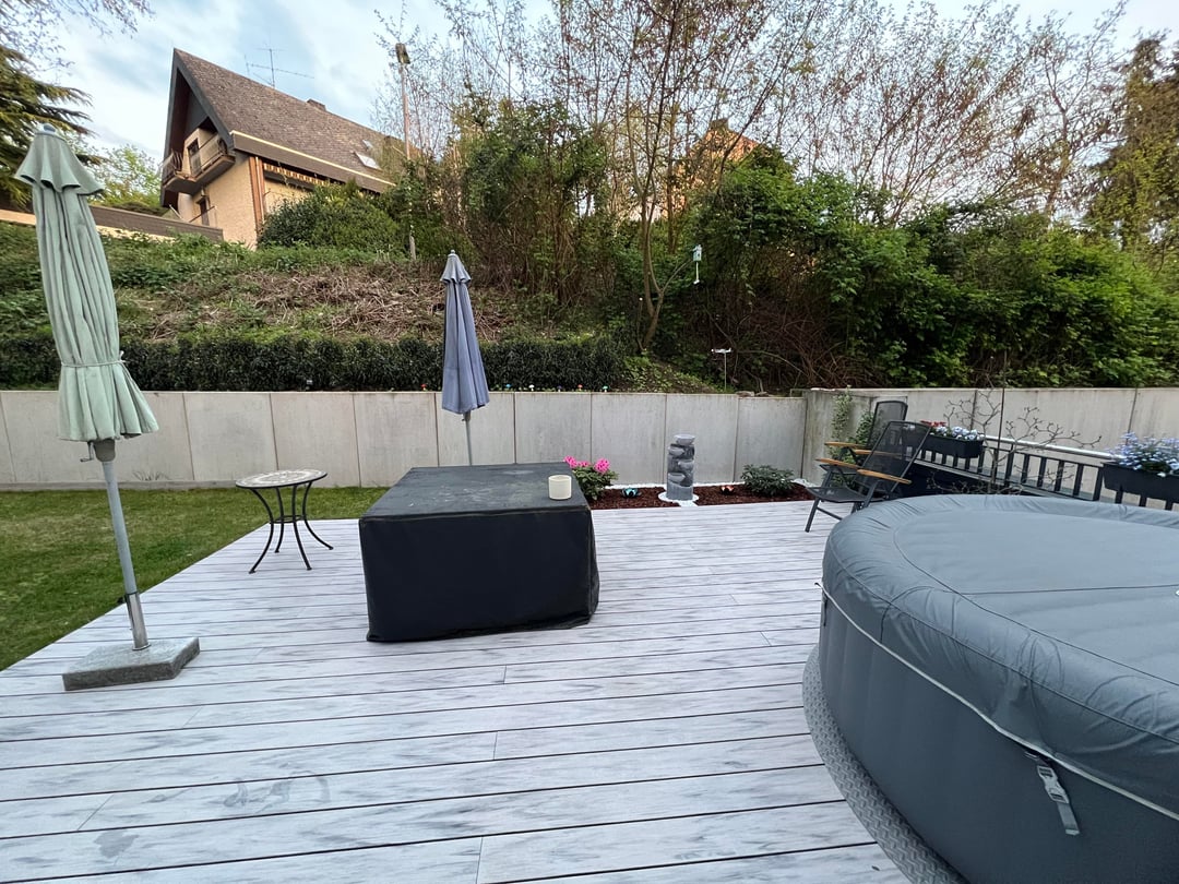 Ich suche nach einer Möglichkeit, in meinem Gartenbereich Stimmungslichter oder Laternen aufzuhängen. Auf der Terrasse selbst kann ich keine Tiere verankern, da es sich um das Dach der Garage handelt.