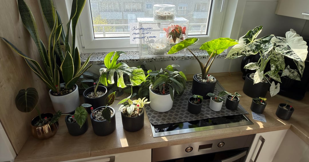 Wenn es bei uns in den Urlaub geht, stellt meine Freundin ihre „Lieblinge“ immer schön zusammen damit ihr Papa beim Giesen nichts vergisst 😃 So sieht das dann aus, der ganze Esstisch und die Küche ist voll… Von: Veenx