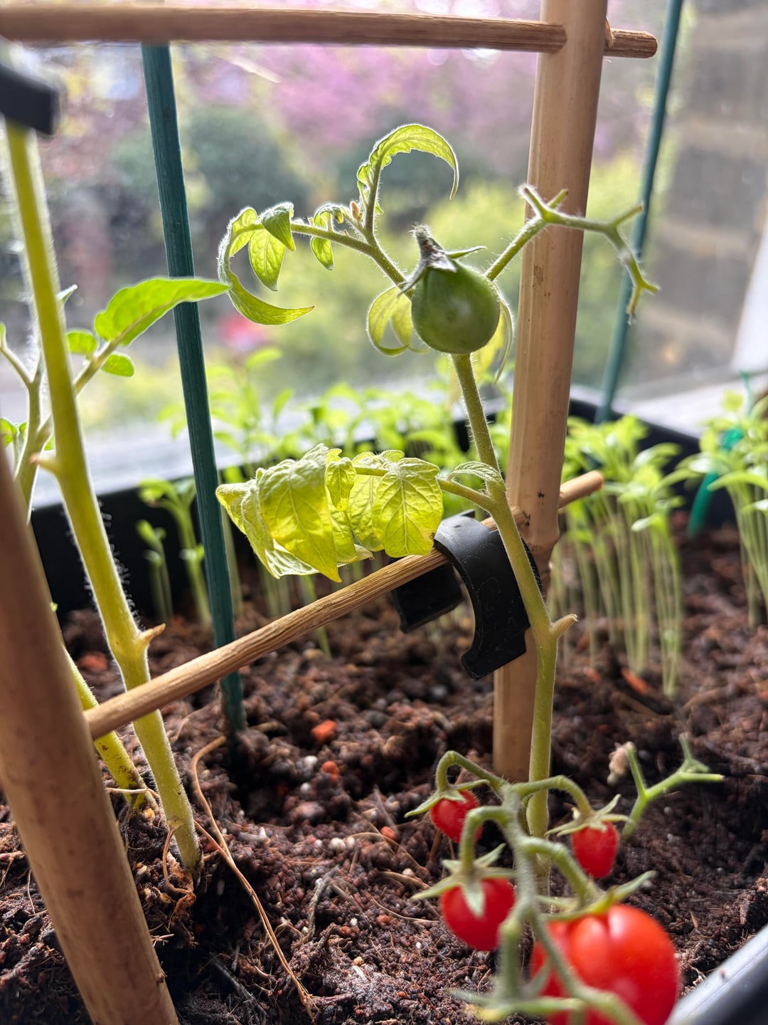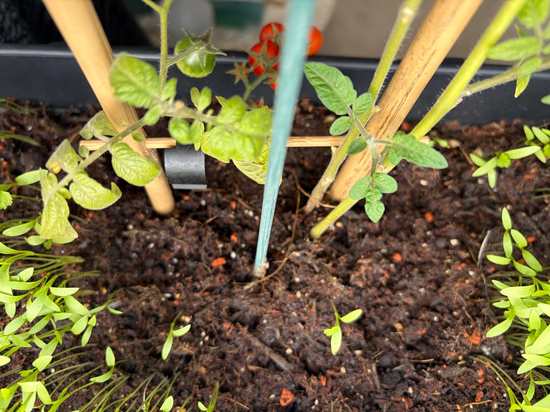 Wir hatten einige Tomatenstecklinge, die wir im Wasser züchteten, und nachdem die Wurzeln gekeimt und ziemlich lang waren, beschlossen wir, sie wieder in die Erde zu verpflanzen, in der die ursprüngliche Pflanze wuchs.