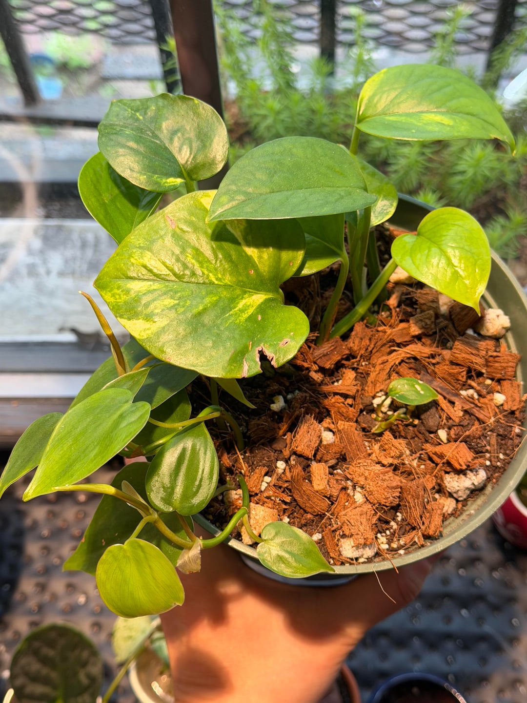 . Wieder Pothos (altbewährt, habe sie schon seit Jahren gehabt, habe sie aber kürzlich nach Hause gebracht. Früher lebte sie in meinem Büro ohne Licht, also war sie sehr glücklich) (Was für eine Sorte ist sie?)