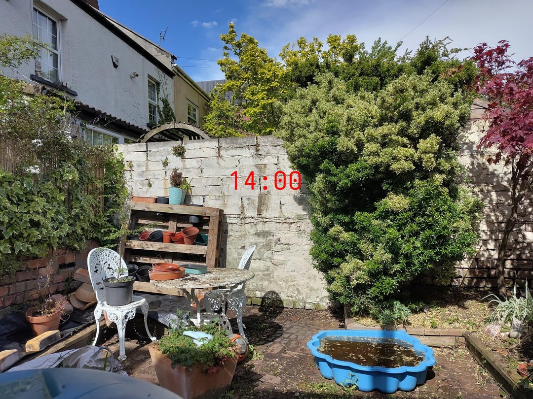 Ich habe Fotos von der Menge an Sonne angehängt, die die Mauer heute im Frühling überstehen wird, wenn das Aufschluss darüber gibt.