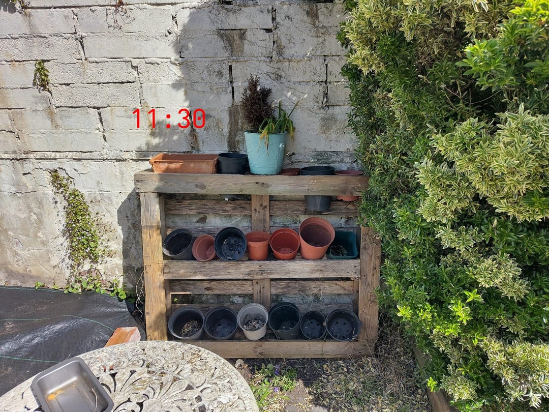 Idealerweise möchte ich die Palette in der Nähe des Busches und nicht auf dem Hochbeet haben. Aber wenn man sich einig ist, dass es nicht genug Sonne bekommt, werde ich es in der Ecke aufbewahren.