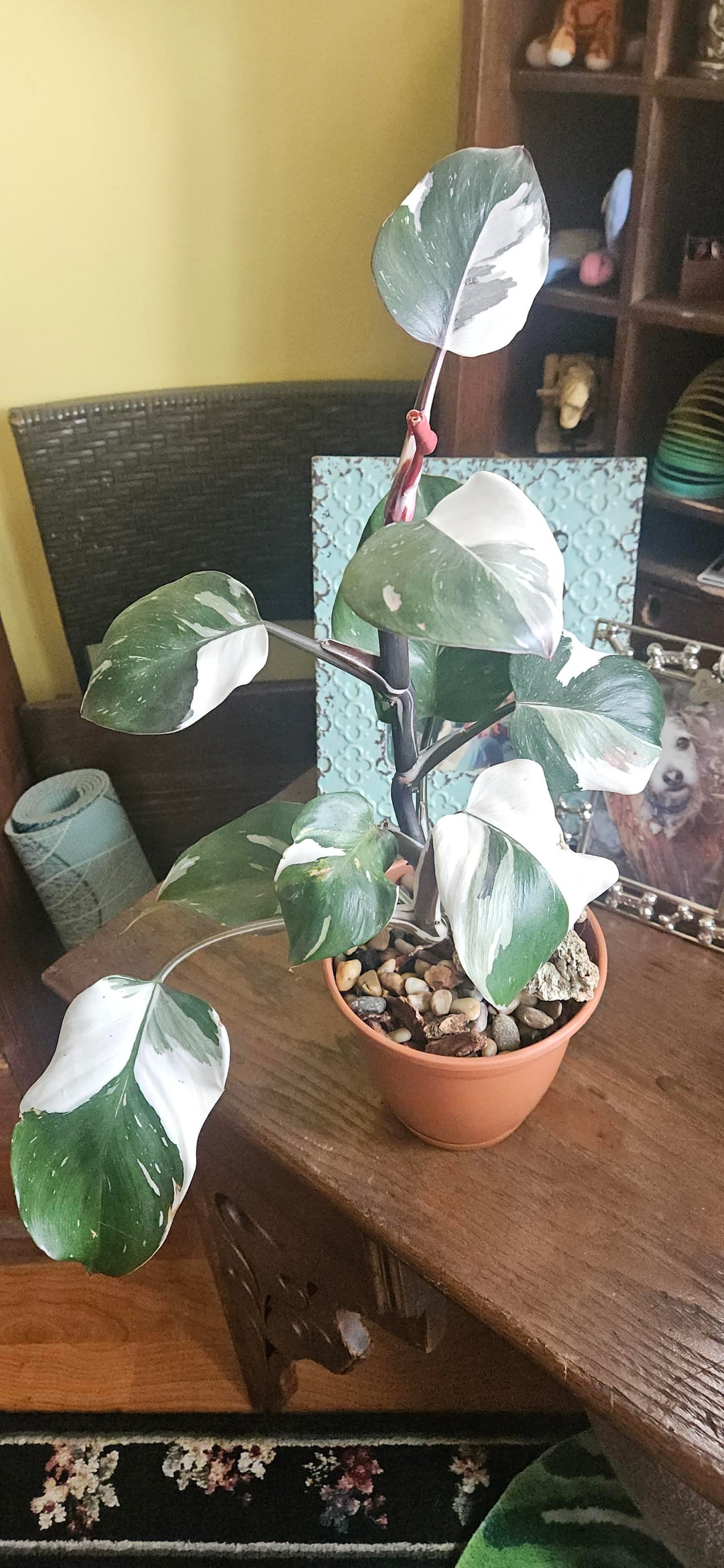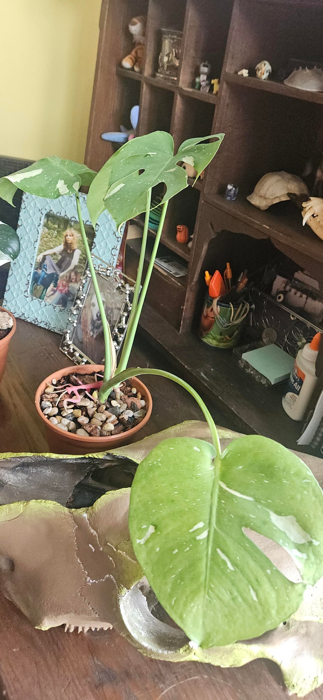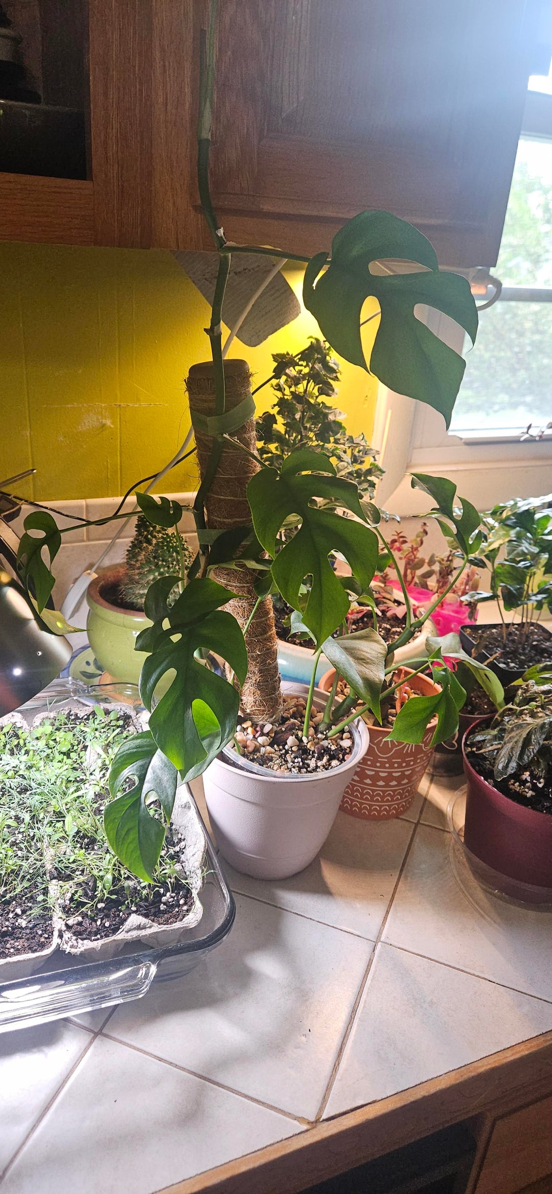 Ich glaube, ich habe ein Mini-Monstera, ein Sternbild-Monstera (?) und irgendwo in meinem wirren Gehirn weiß ich den Namen der dritten Pflanze, aber mir fällt nichts ein. Super aufgeregt über sie! Ich kann nicht glauben, dass sie sie so schön gepflanzt und mir eine vorinstallierte Moosstange geschenkt hat 🖤