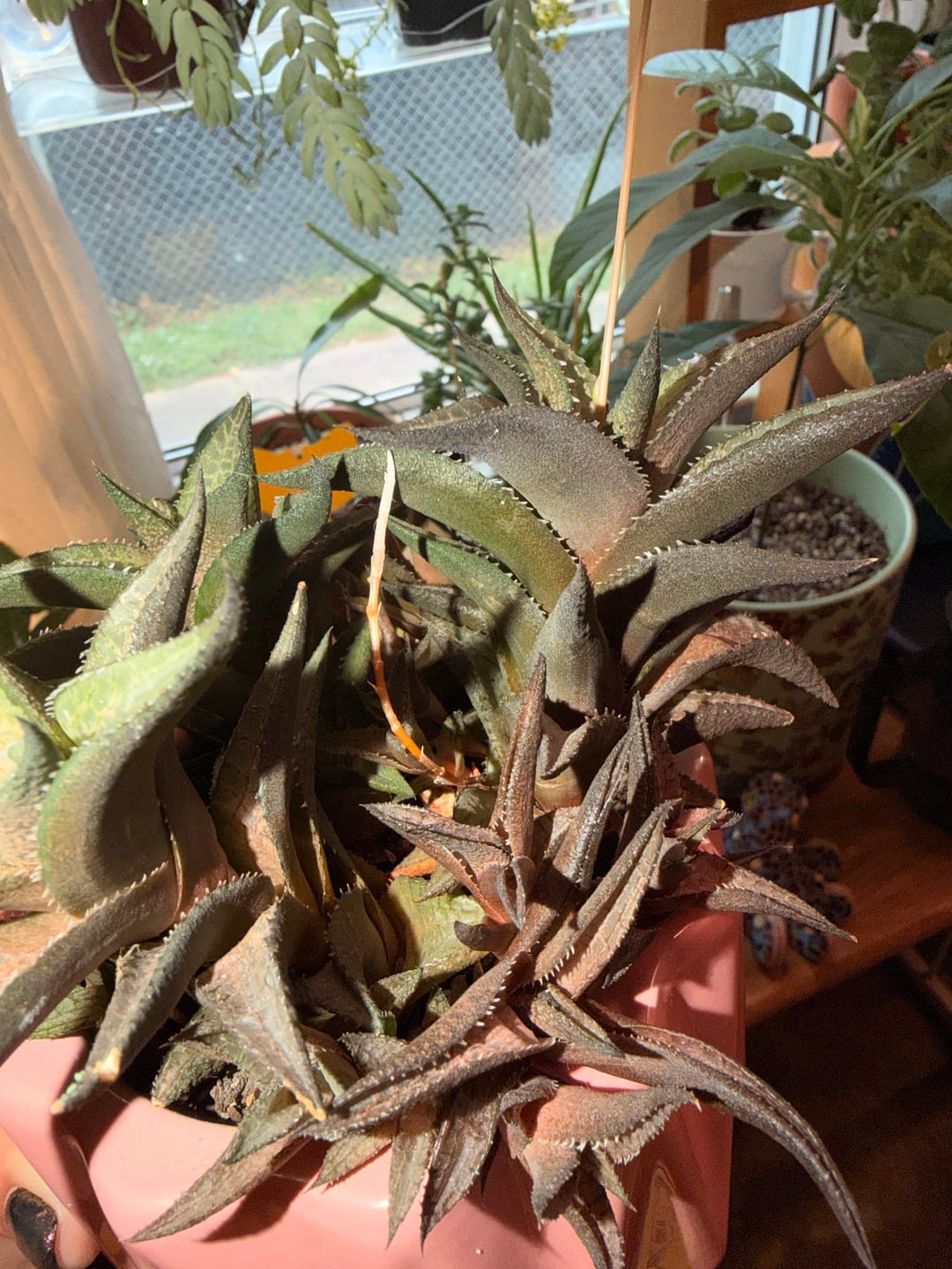 Ich schaute mir meine Pflanze an und bemerkte, dass all diese rankenartigen Strukturen aus der Pflanze hervorgingen. Sie wachsen nicht wie eine Blume in die Höhe, sondern gehen kopfüber in den Boden. Siehe Bild zwei als Beispiel. Ich dachte, es wäre vielleicht eine wachsende Blume, die auf dem Weg steckengeblieben ist, aber als ich sie herauszog, sah sie völlig anders aus als eine tatsächlich wachsende Blume. Der Aufbau ist sogar völlig anders. Da sind mehrere drin, die kopfüber im Boden stecken. Kennt jemand auch den Namen des jeweiligen Sukkulenten? Auf Google-Bildern wird mir immer wieder „Schwarzer Edelstein“ angezeigt, aber es sieht anders aus als das, was ich online sehe.
