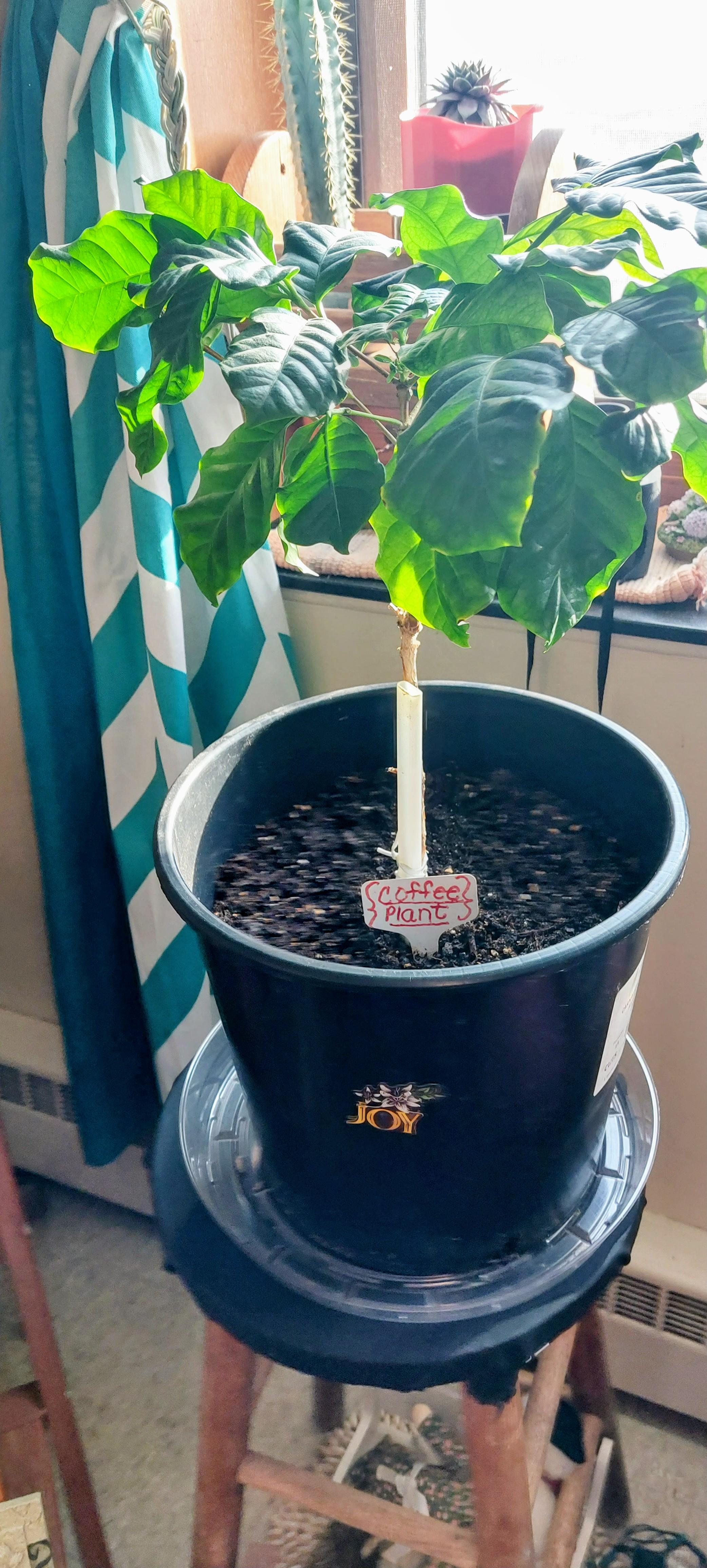 Das ist mein "KAFFEEPFLANZE"; Ich habe diese Pflanze seit über ein oder zwei Jahren und habe sie in einen größeren Behälter umgepflanzt, natürlich in neue Erde, und mir scheint der Standort zu gefallen, an dem ich sie habe, in der Nähe einer sonnigen Fensterbank mit indirektem Sonnenlicht. Ich habe neues Wachstum, aber es scheint mir nicht zu gelingen, es größer zu machen oder mehr auszutreiben. Mache ich etwas falsch? Für Vorschläge wäre ich sehr dankbar.