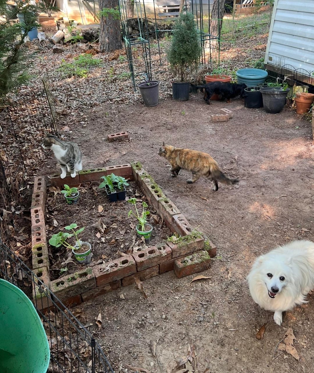 Ich habe mein altes Gewächshaus abgebaut und es zu einer Art Spalier für Gurken und Kürbis umgebaut. Ich nahm ein altes Kopfteil, das ich aufbewahrt hatte, um ein weiteres Blumenbeet für Okraschoten, Paprika, Brokkoli und Blumenkohl anzulegen. Ich habe auch ein Bewässerungssystem zusammengestellt, das ich bei Amazon gekauft habe, und ich bin wirklich zufrieden mit dem Ergebnis. Es erleichtert das Gießen erheblich. Ich habe meinen Brunnen aus einem Satz Töpfe, die ich bereits hatte, und einer Pumpe von Amazon gebaut.
